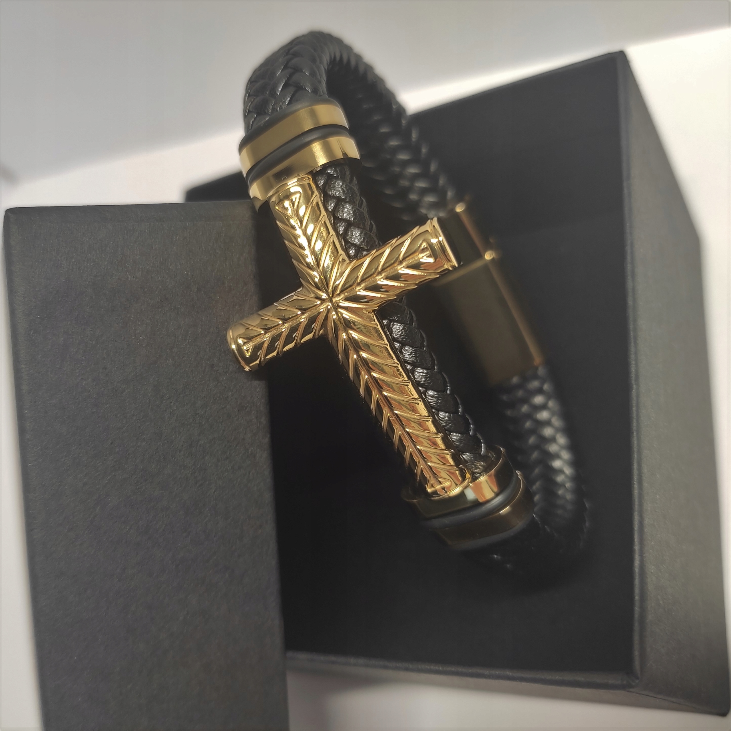 Мужской кожаный браслет Универсал, золотой крест