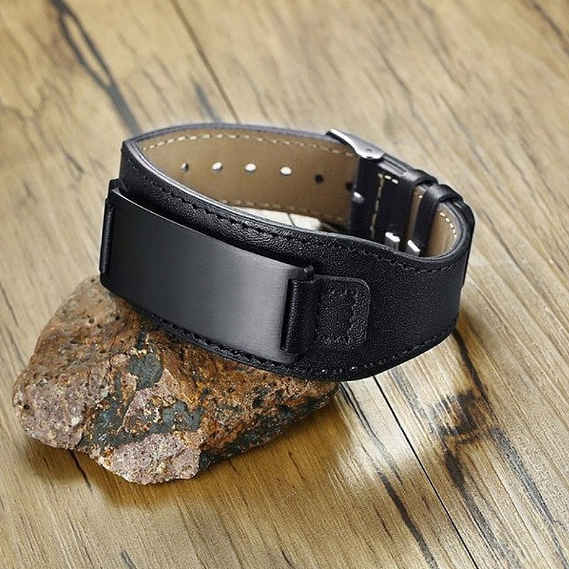 ЧОЛОВІЧИЙ ШКІРЯНИЙ БРАСЛЕТ З ГРАВІРОВОЮ ДЛЯ БАБУСІ