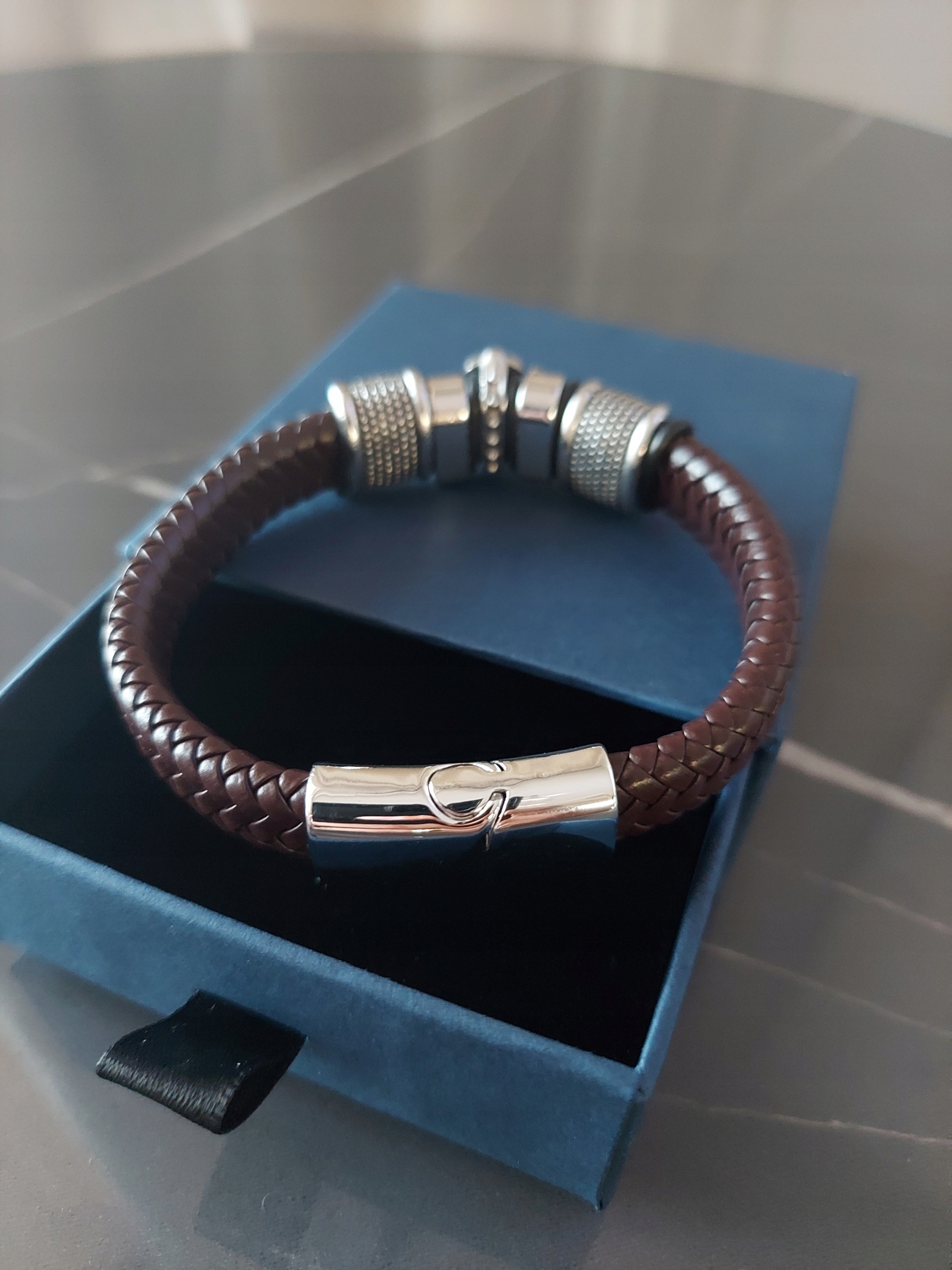 Коричневый кожаный мужской браслет станет прекрасным дополнением к любому наряду. Элегантный дизайн с плетеной кожей делает его подходящим для любого случая и определенно привлекает внимание.