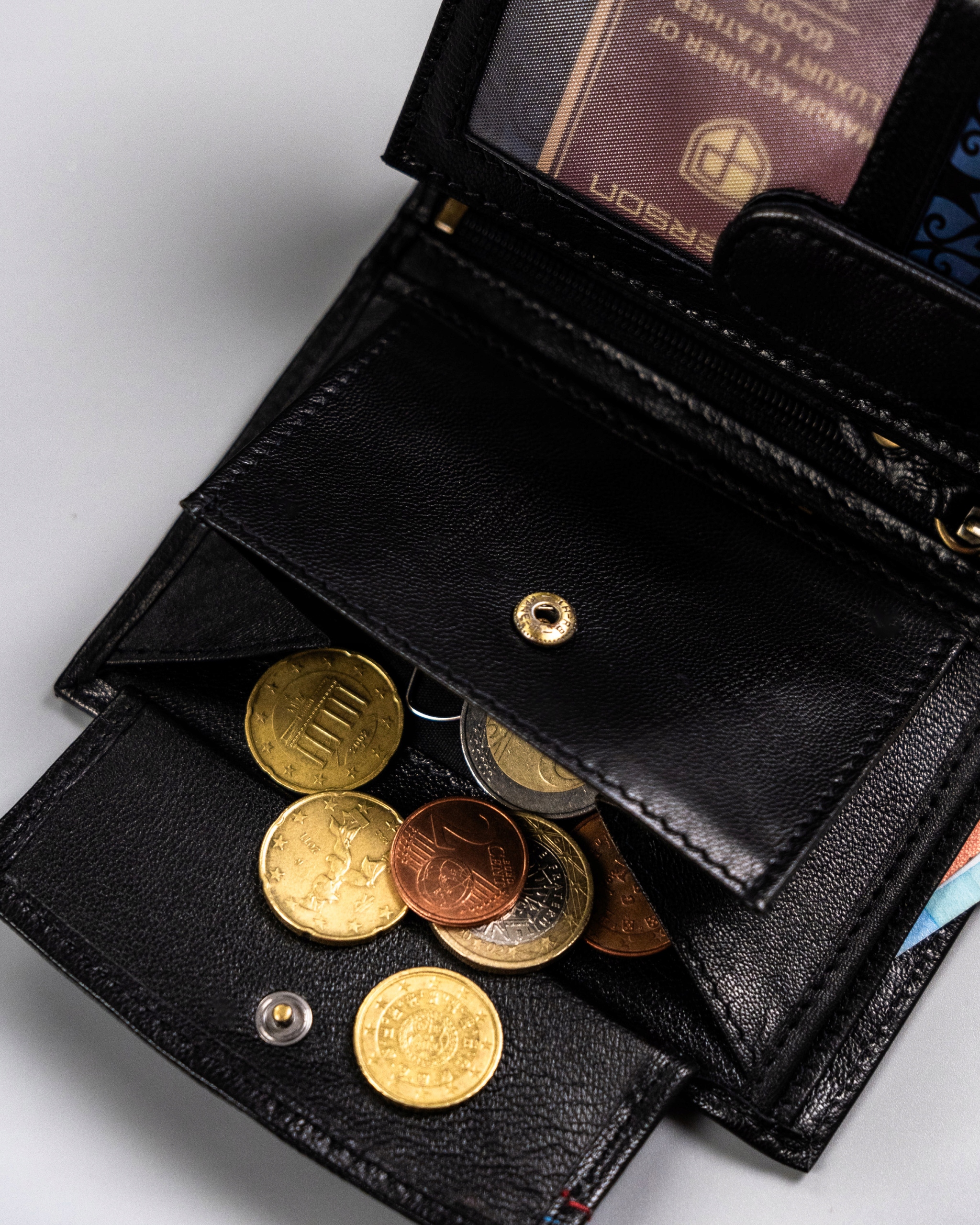Кошелек оснащен специальной подкладкой с СИСТЕМОЙ БЛОКИРОВКИ RFID (Rрадио-FчастотнаяID аутентификация), которая защищает бесконтактные карты, биометрические документы, удостоверения личности и карты общественного транспорта от несанкционированного считывания данных. Технология делает невозможным чтение данных с помощью специальных считывателей, используемых для кражи данных.