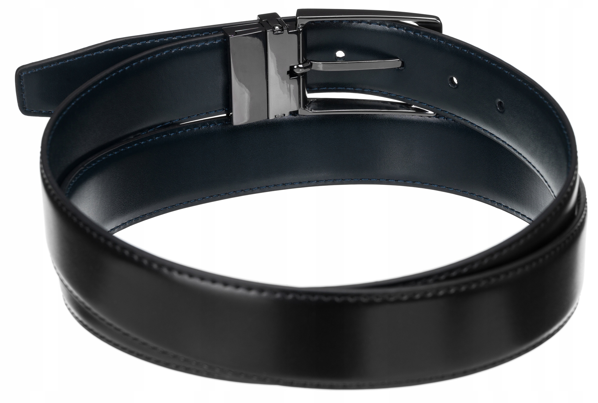 При изготовлении этого ремня было использовано потрясающее решение! На нем установлена вращающаяся классическая пряжка, благодаря чему ремешок становится двусторонним! Черный пояс? Темно-синий пояс? Выбрав наш товар, вы получаете 2 в 1 – эту модель можно сочетать с любой одеждой!