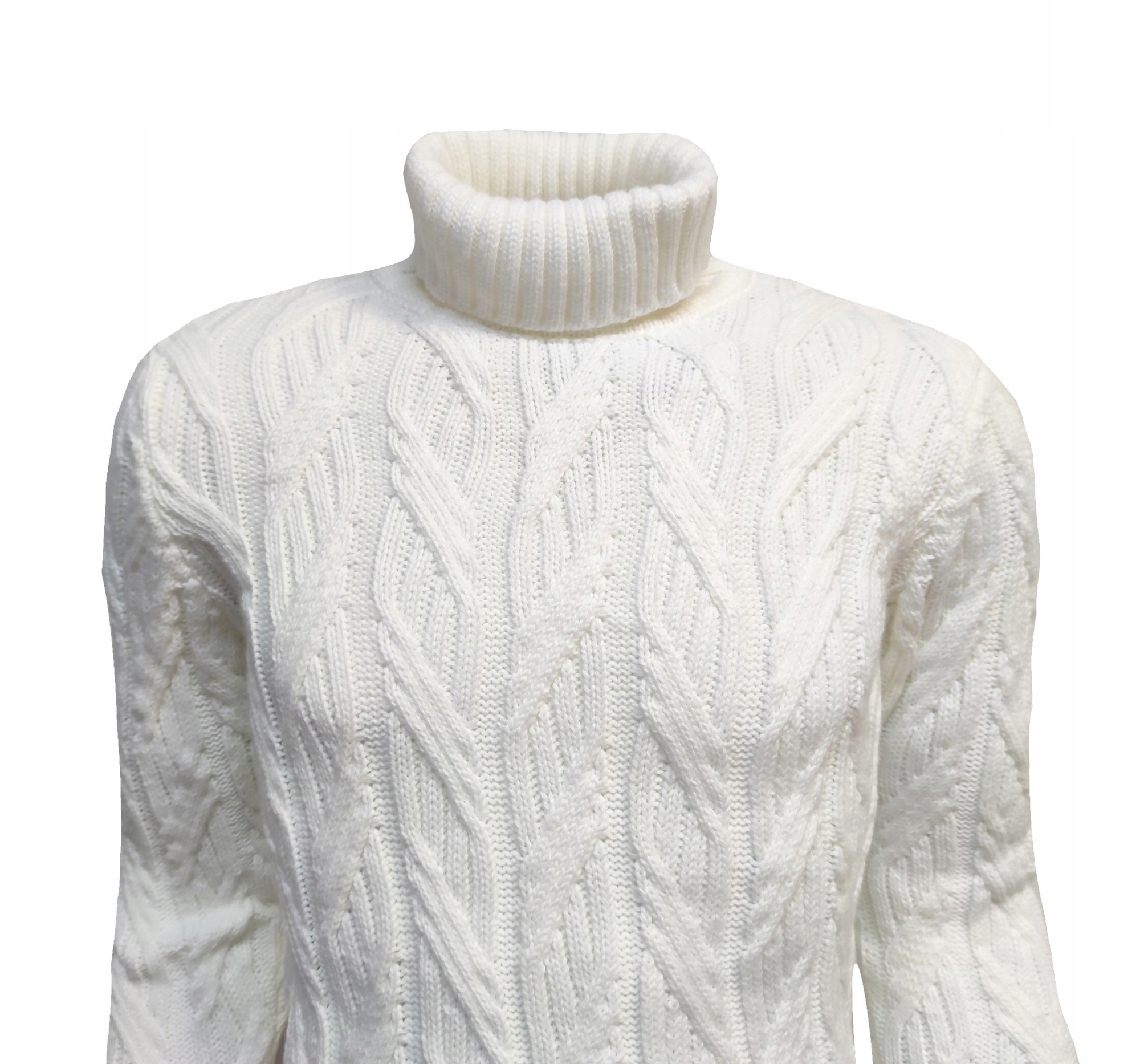 Белая мужская водолазка плотного плетения. Изготовлен из шерсти и акрила. Незаменимый элемент вашего гардероба в холодные дни.