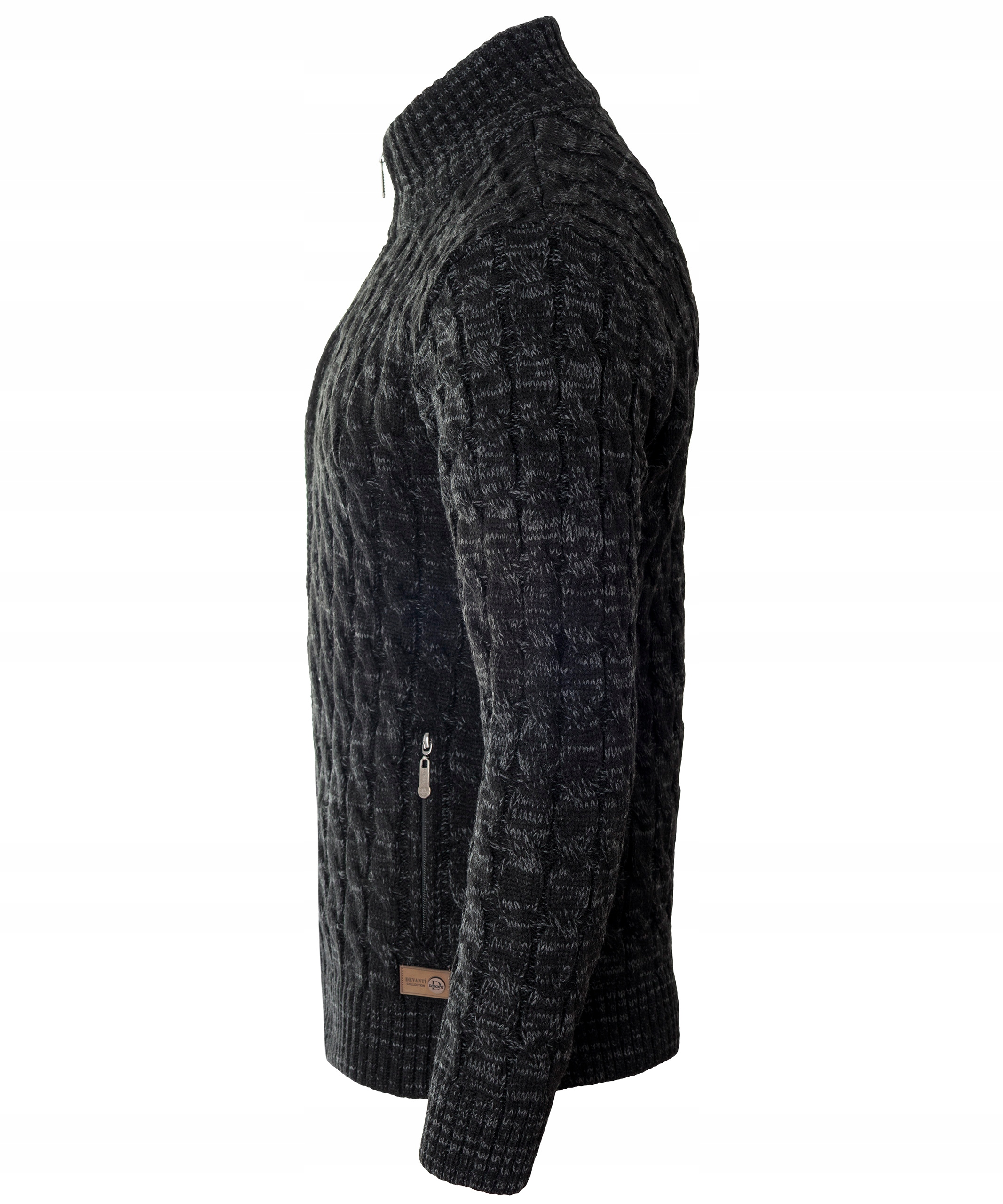 Предмет нашего предложения — мужской свитер с карманами на молнии, длинными рукавами, черного цвета очень приятный на ощупь материал