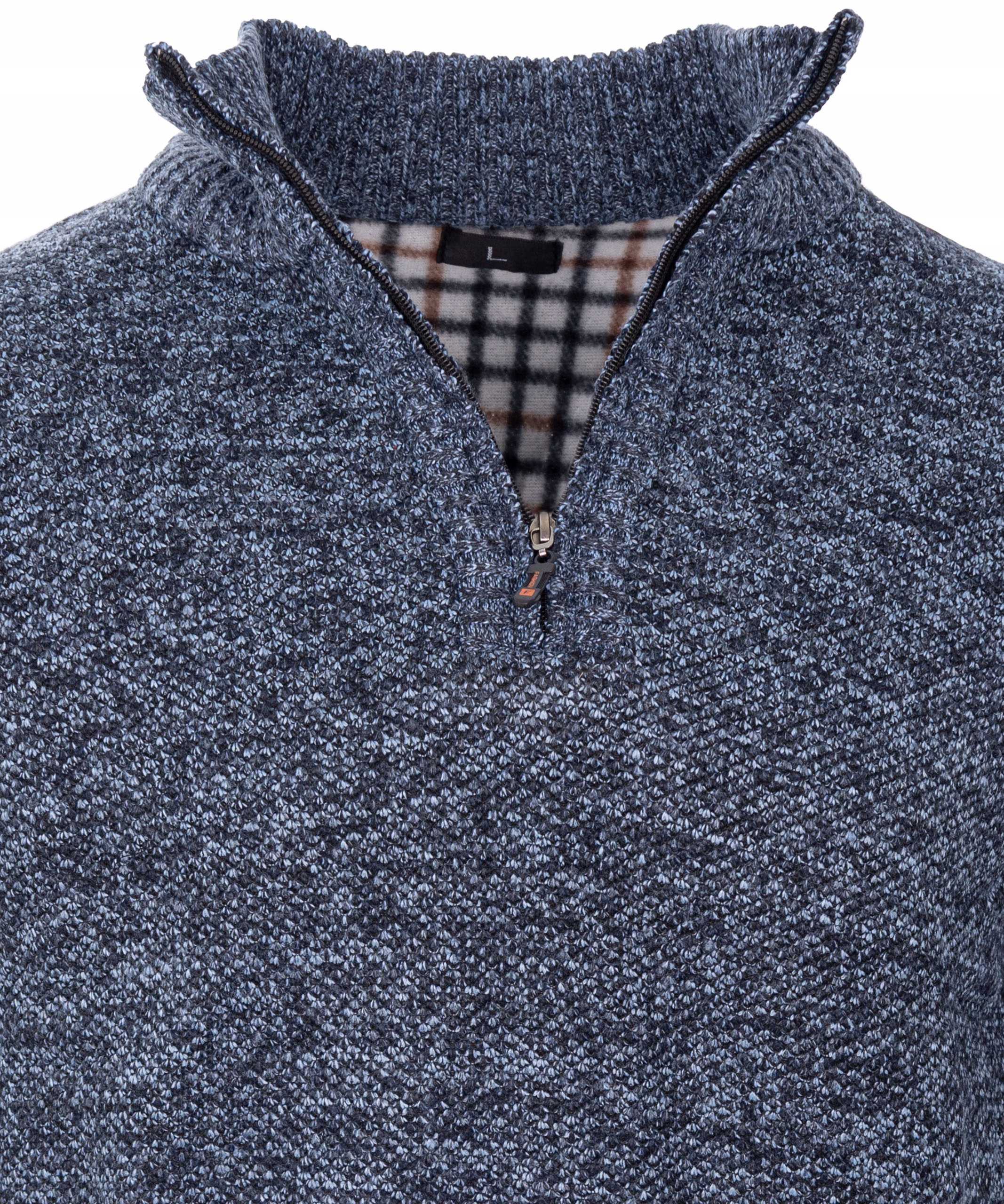 Предмет нашего предложения — мужской свитер утеплён внутри флисом сине-меланжевого цвета