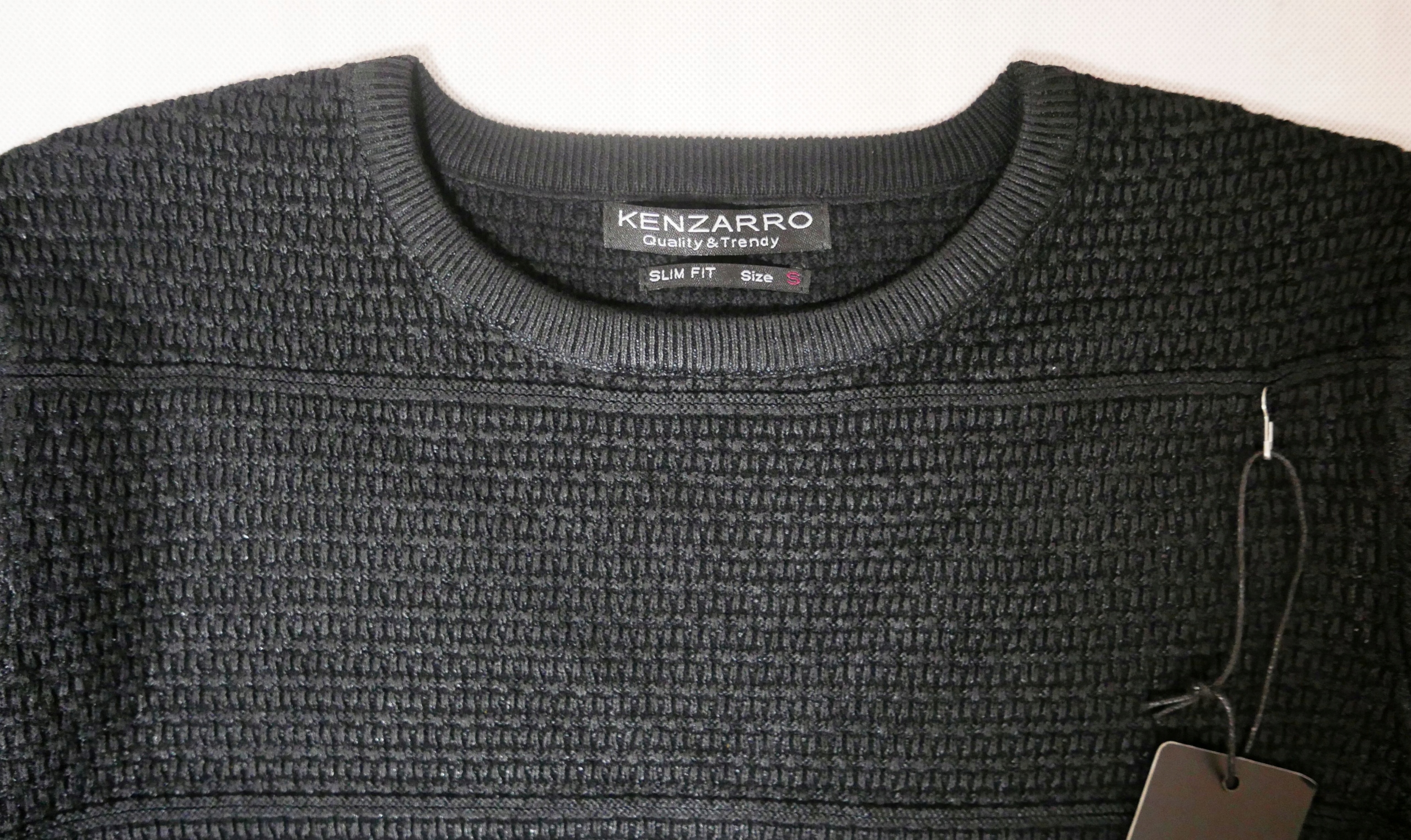 мужской свитер Kenzarro с элегантным разрезом, в тонком структурном рисунке, в черном с слегка восковым внешним видом h2> свитер идеально подходит для повседневного использования, социальных собраний и отдыха h2> Cut: Slim fit h2> хлопок h2>