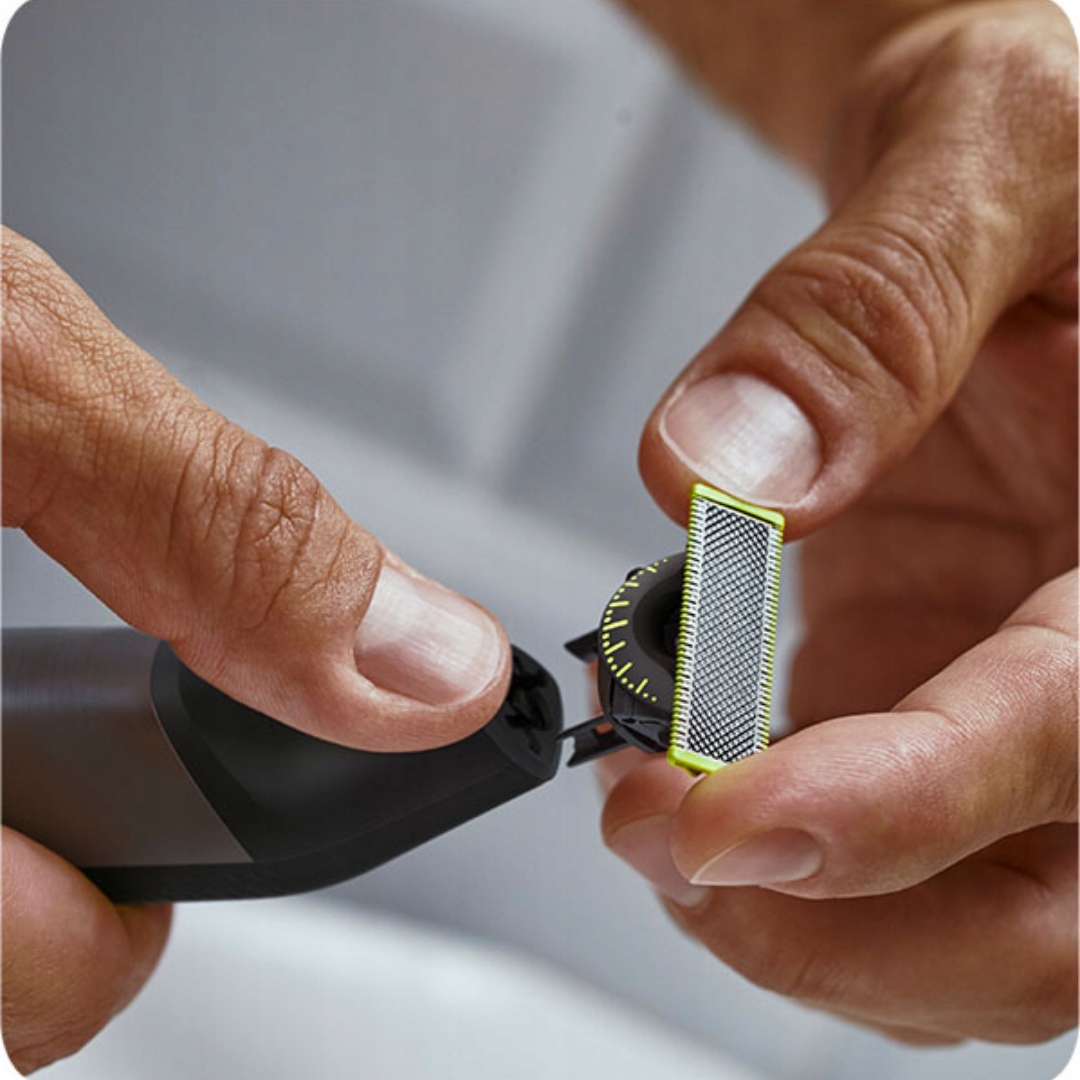 Philips OneBlade Pro Face + Body оснащена лезвием на 360 градусов, которое подстригает, бреет и укладывает волосы любой длины. В комплект входит лицевое лезвие и дополнительное лезвие с защитным колпачком. Вместо нескольких устройств — достаточно OneBlade!