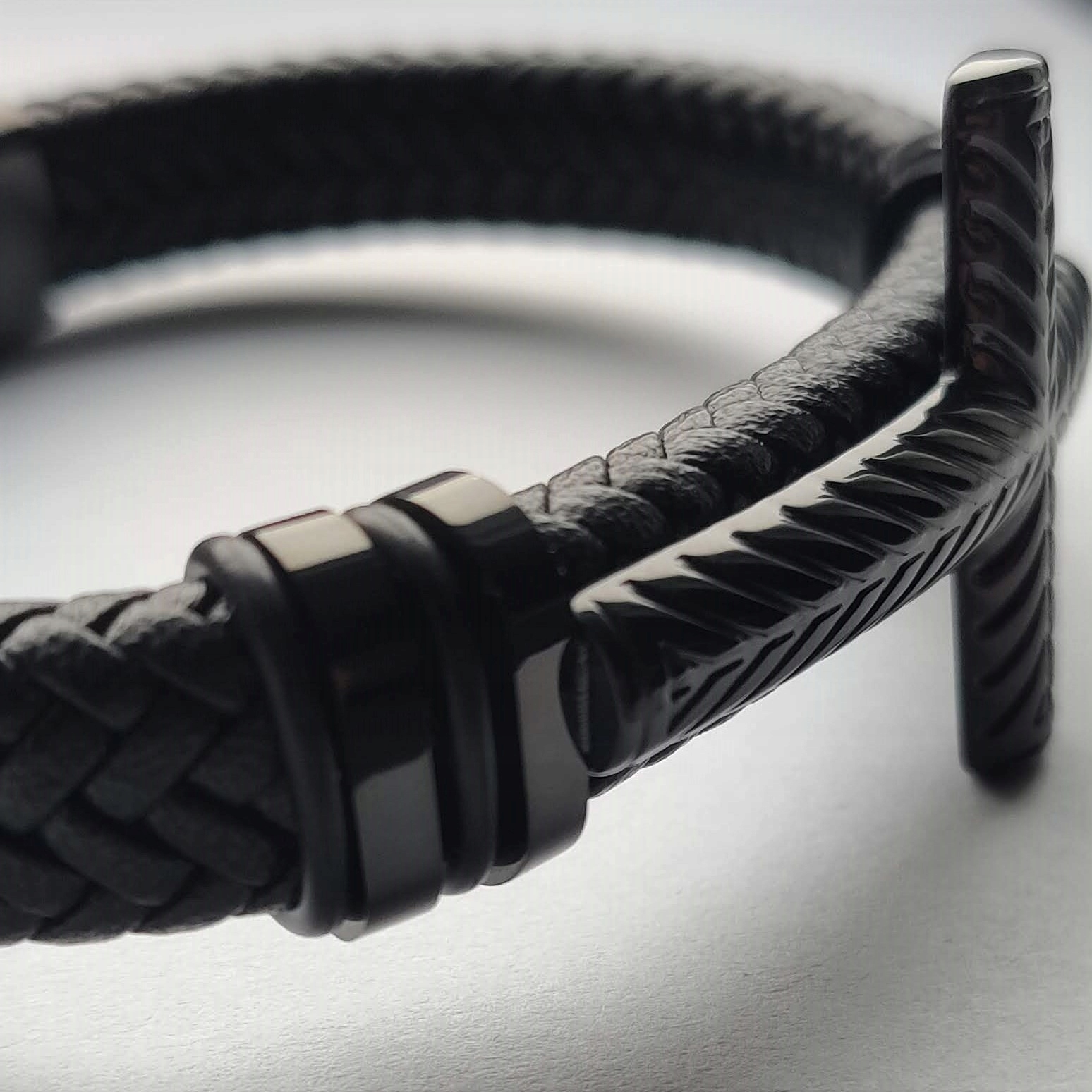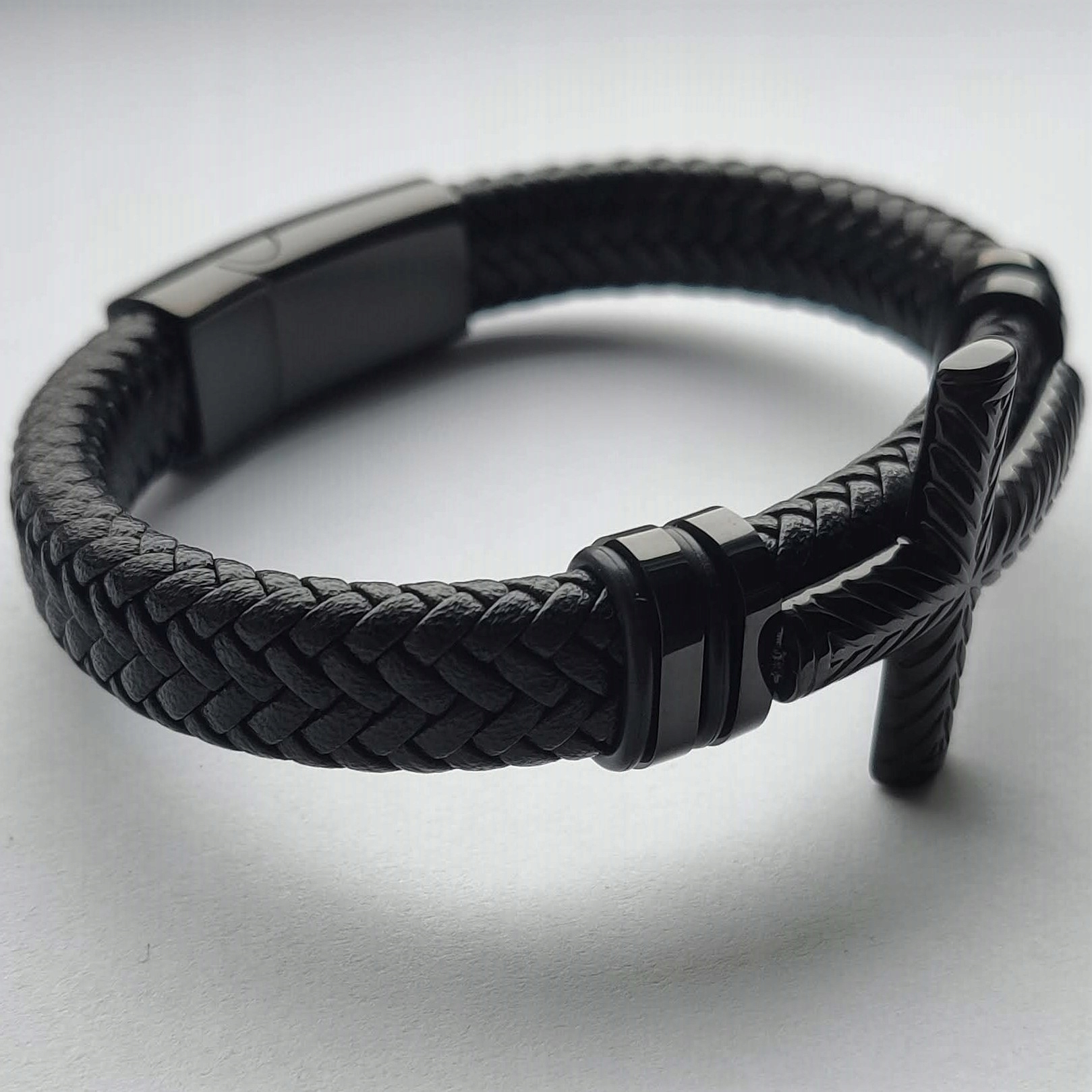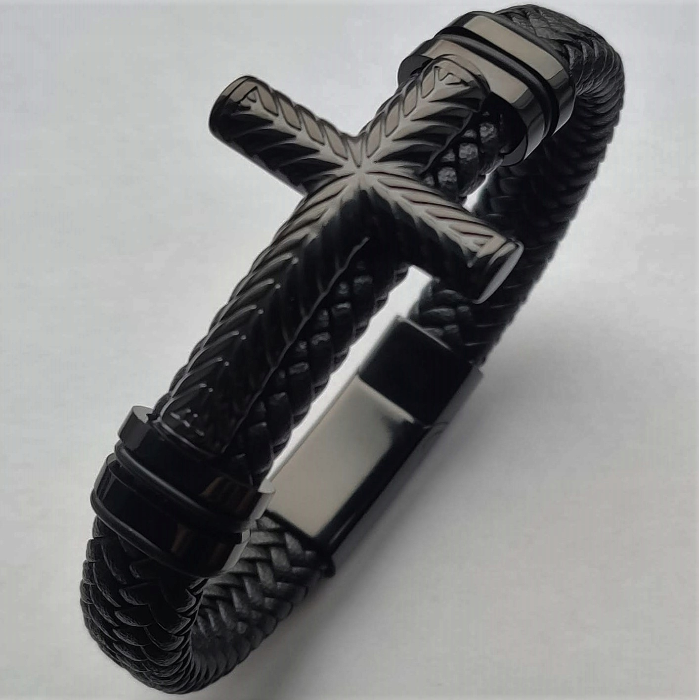 Мужской кожаный браслет Versatile, черный крестик