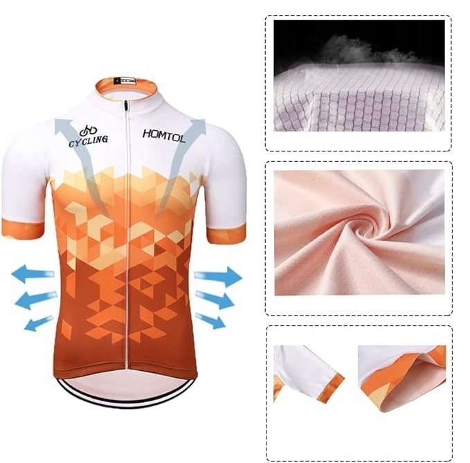 Велоодежда изготовлена из полиэфирной ткани, быстросохнущей, хорошей эластичности и очень удобной. Усовершенствованная версия дышащей сетчатой ткани по бокам одежды для лучшей воздухопроницаемости.