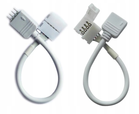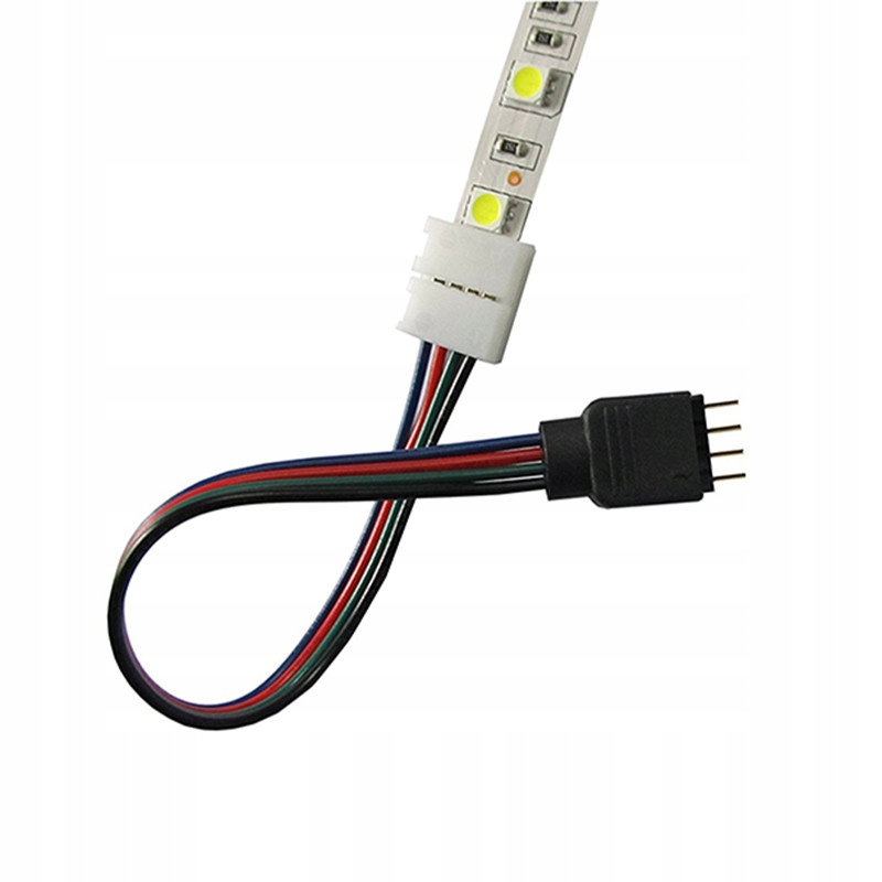 Угловой разъем с ручным обжимом и кабелем для светодиодных лент RGB с 4 точками пайки. Он позволяет быстро соединить две светодиодные ленты SMD 5050 шириной 10 мм по углам без необходимости использования паяльника. Просто поместите ленту правильно и закройте защелку. На другом конце имеется съемная вилка, поэтому ее также можно использовать в качестве вилки «мама». Разъемы можно легко снять. Они многоразовые. Разъем можно закрепить на обычную или водонепроницаемую RGB-ленту (предварительно сняв силиконовую крышку).