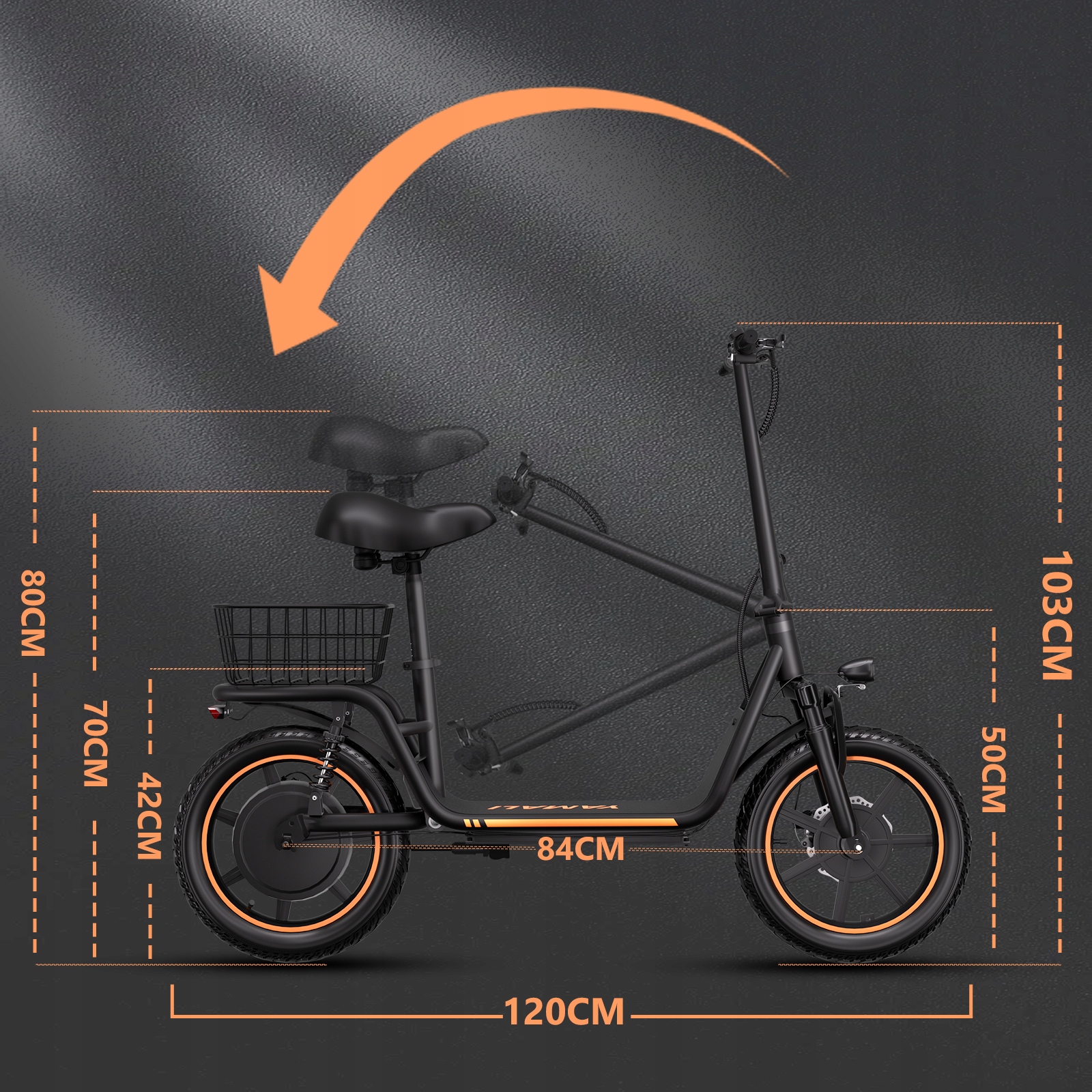 оснащена литий-ионной батареей 36 В, 16 Ач с запасом хода до 40–45 км. Он изготовлен из высококачественных материалов, сверхлегкий и прочный. Максимальная нагрузка 100 кг.