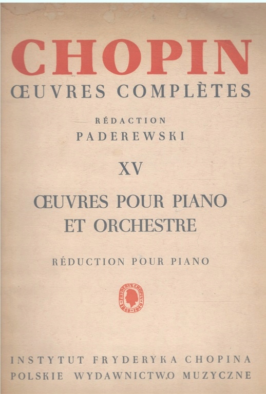 CHOPIN OEUVRES COMPLETES XV OEUVRES POUR PIANO ET ORCHESTRE Padarewski 1964