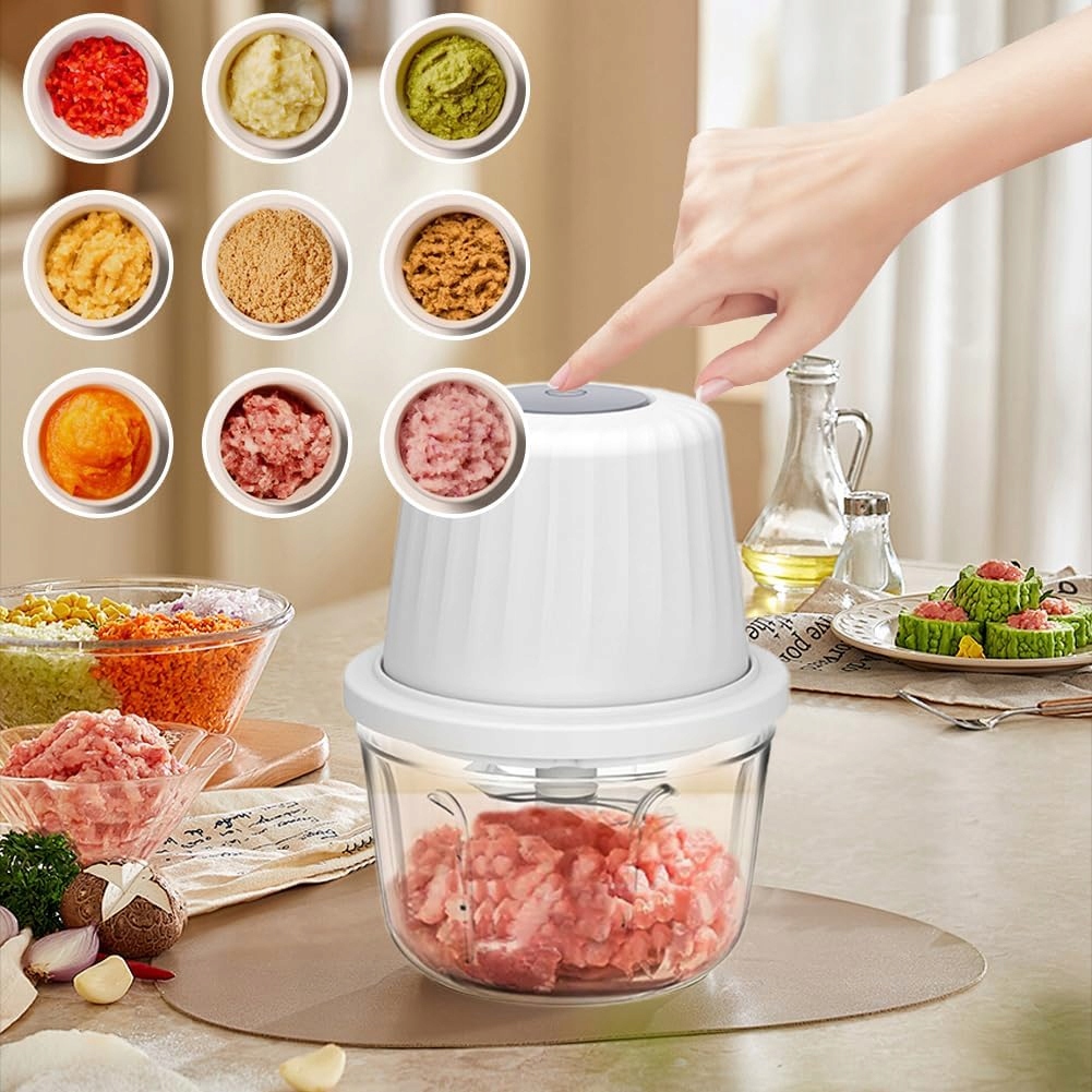 🫑🫑Эффективный кухонный комбайн — конструкция One-Touch обеспечивает удобство управления одной рукой. Просто нажмите кнопку питания, и вы сможете быстро и легко нарезать пищу. Мощный электрический измельчитель всего за несколько минут измельчит все ингредиенты, такие как чеснок, специи, орехи, лук, овощи, перец чили, мясной фарш и даже небольшие кубики льда.