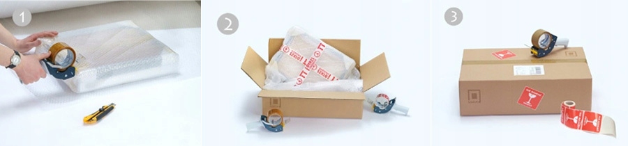 Заклейте упаковку прочной упаковочной лентой и тщательно нанесите на стекло информацию и этикетки. Только такой строгий подход дает нам уверенность в том, что наши заказы дойдут до наших клиентов в целости, без повреждений и в срок.
