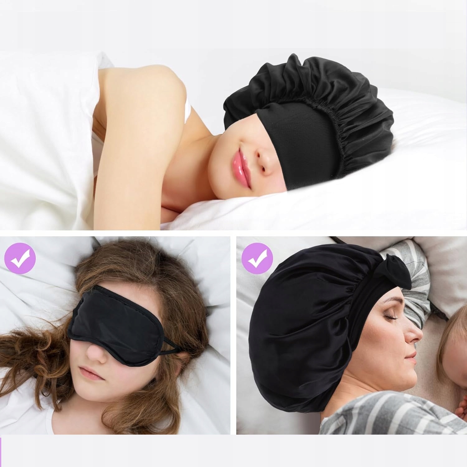 ЧЕРНАЯ АТЛАСНАЯ ШАПОЧКА ДЛЯ СПЯ, ЗАЩИТА ОТ МАСЛА