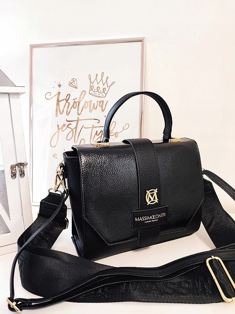 Черная сумка-сундук Massimo Contti с лакированным клапаном
