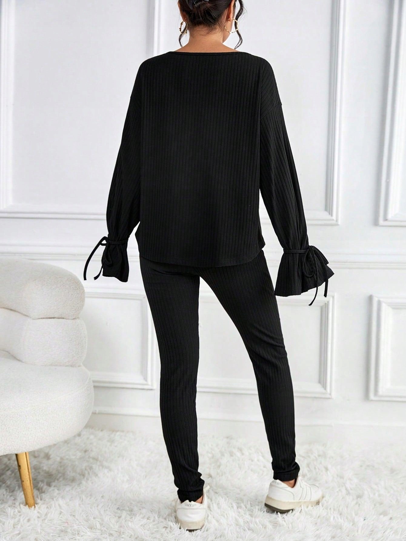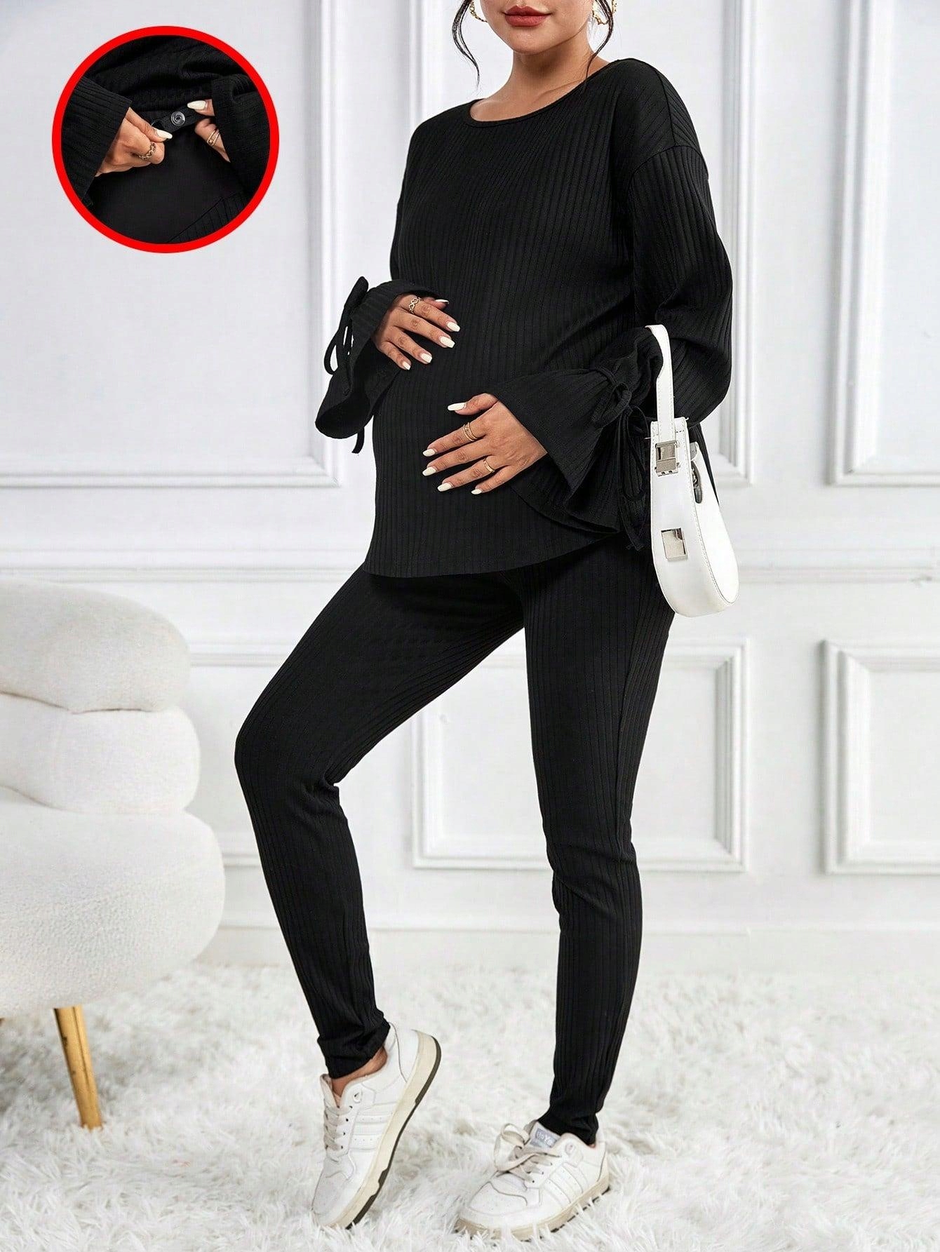 ЧОРНА БЛУЗКА В РУБРИЧКУ ДЛЯ ВАГІТНОСТІ, ЛЕГІНСИ З ДОВГИМ РУКАВОМ КОМПЛЕКТ SHEIN 36