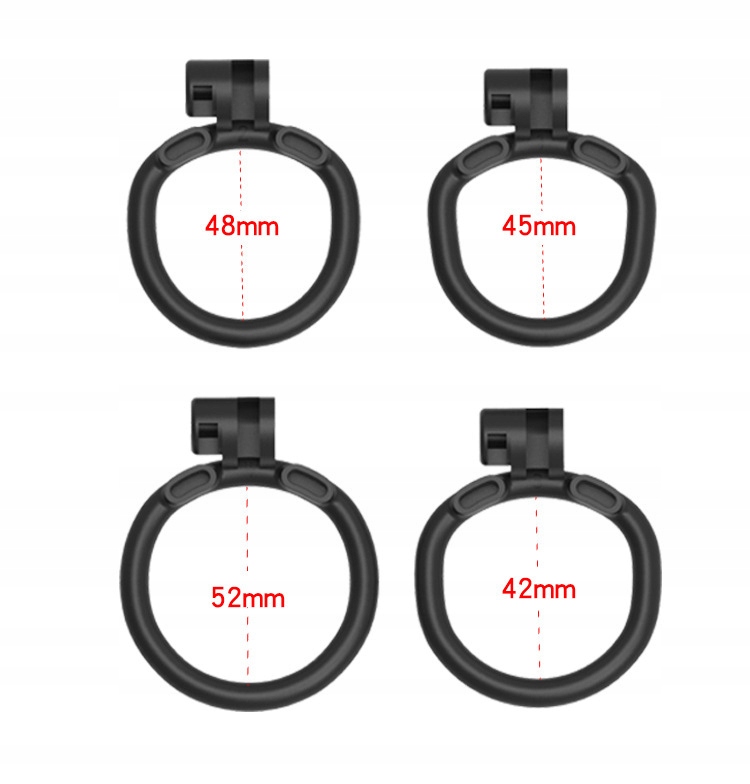 Спецификация продукта: Материал: Нейлоновая смола - прочная и легкая, дружеская кожа и легко поддерживать чистоту. Размеры клеток: диаметр 36 мм, плоский профиль, обеспечивающий комфорт и невидимость при одежде. Набор колец: четыре разных размер колец (42, 45, 48 и 52 мм), что позволяет адаптироваться клетку к индивидуальным потребностям. Различные варианты закрытия: вы можете выбрать традиционную блокировку ключей или одноразовые пластиковые замок, которые обеспечивают быстрое и удобное использование.
