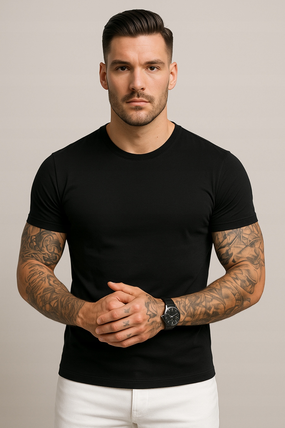 Черные мужчины T -For - прилегающая T -Fish - Slim Fit - Гибкий M