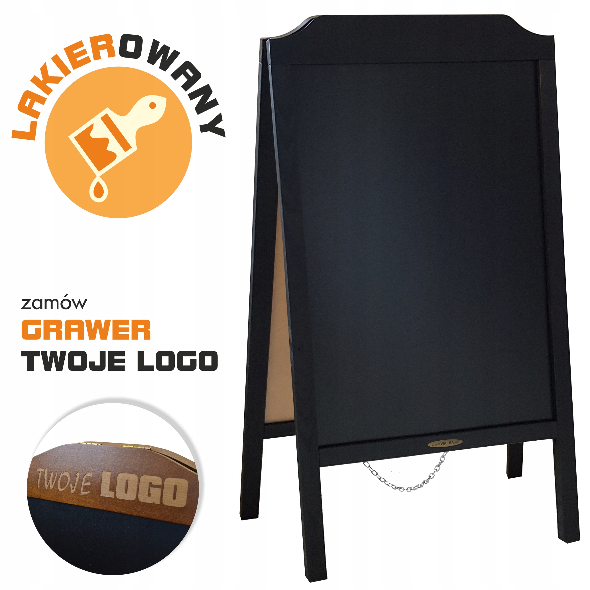 Черная доска с более длинной (42 см) !НОВИНКА) с волнообразной верхней планкой – это очень элегантная и оригинальная витрина вашей компании. Деревянные элементы доски покрыты лаком, поэтому ее каркас не меняет цвет под воздействием солнечных лучей и долго остается прочным. Ваш ЛОГОТИП, название компании или реклама также могут быть выгравированы лазером на верхней полосе доски. Вывеска с гравировкой гораздо эффективнее привлекает внимание потенциальных клиентов.