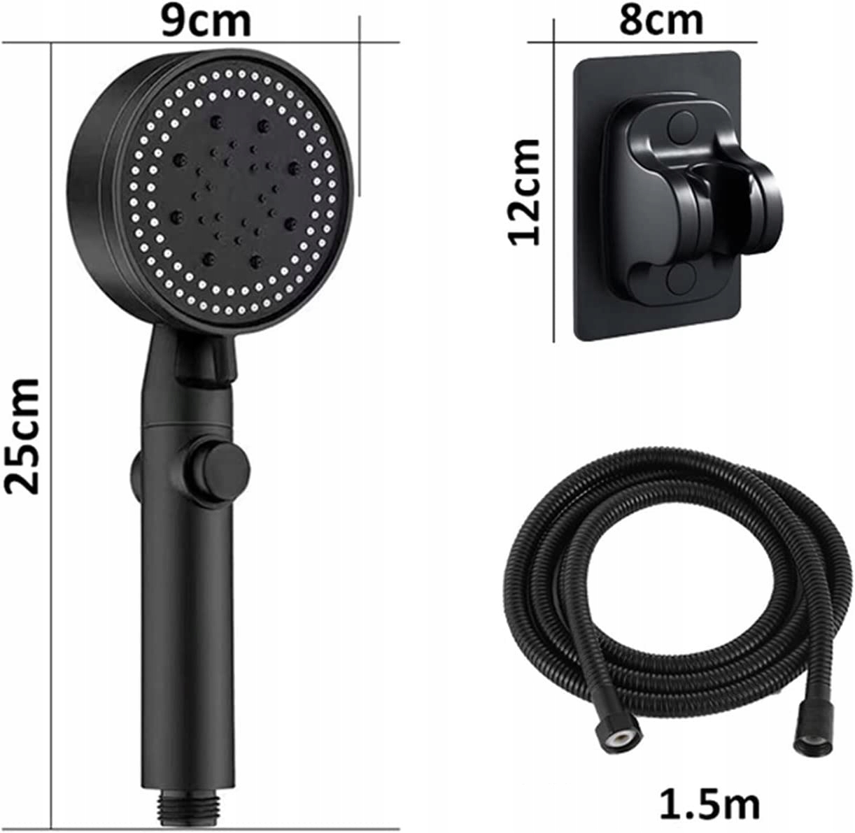 ЧОРНА ДУШОВА РУЧКА + РУЧКА + ШЛАНГ НАБІР 5 РЕЖИМІВ