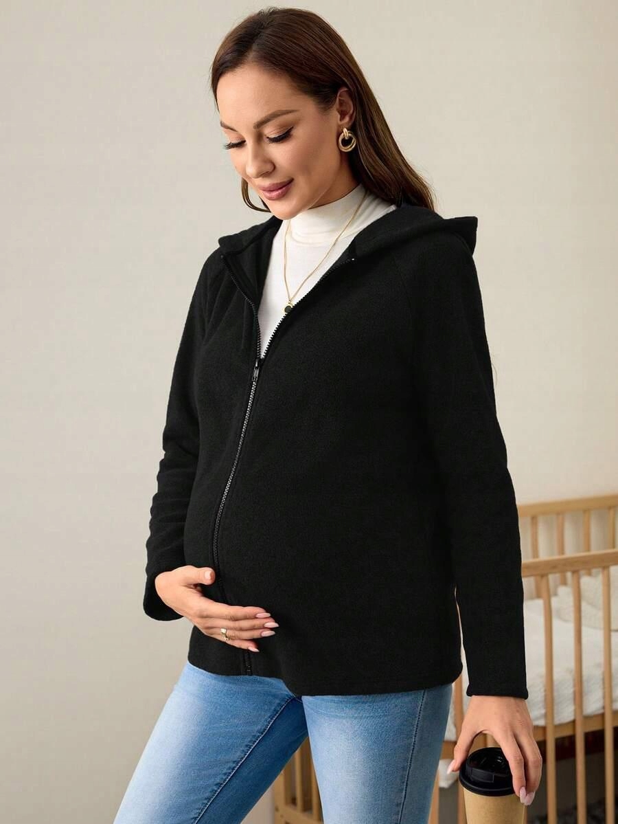 ЧОРНА ФЛІСОВА ТОЛСТОВКА ДЛЯ ВАГІТНИХ РОЗСУВНА З ДОВГИМ РУКАВОМ SHEIN 40/42
