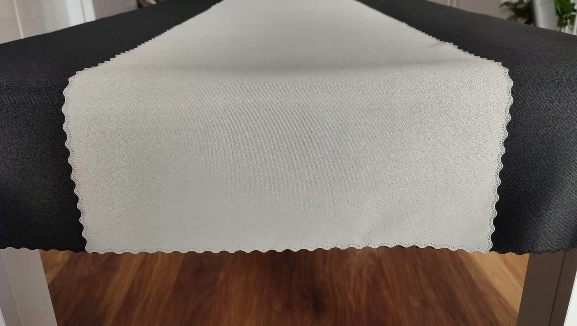 Twin -toddle Finish со специальной ультразвуковой техникой; Это приводит к тому, что скатерть была двойной и, таким образом, остается свежей дольше. Эта отделка находится на таблице.