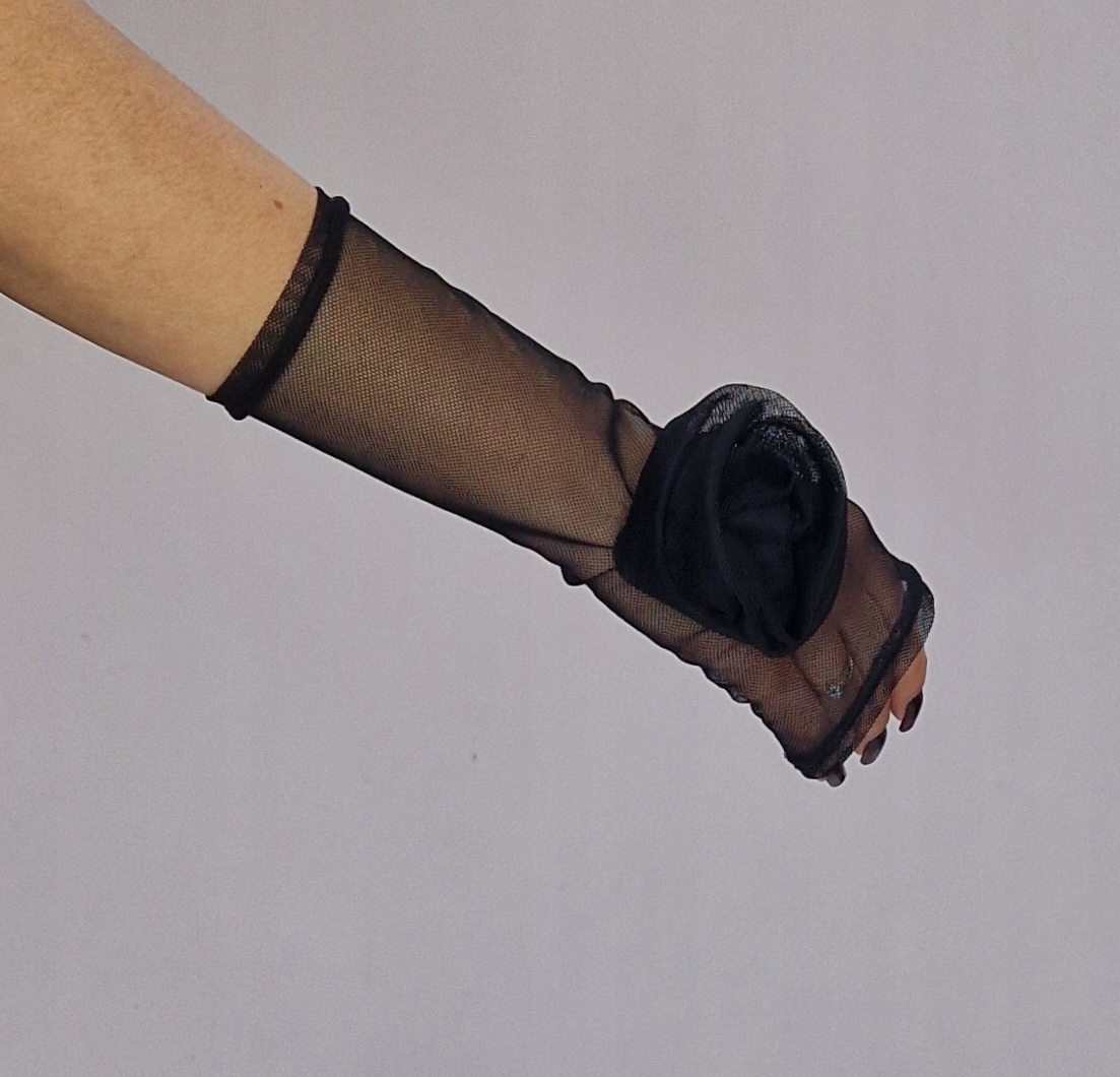 - Дополнительно в комплект входят: Элегантные сетчатые перчатки, украшенные цветочной аппликацией в виде розы. – стильный акцент, подчеркивающий неповторимый характер платья.