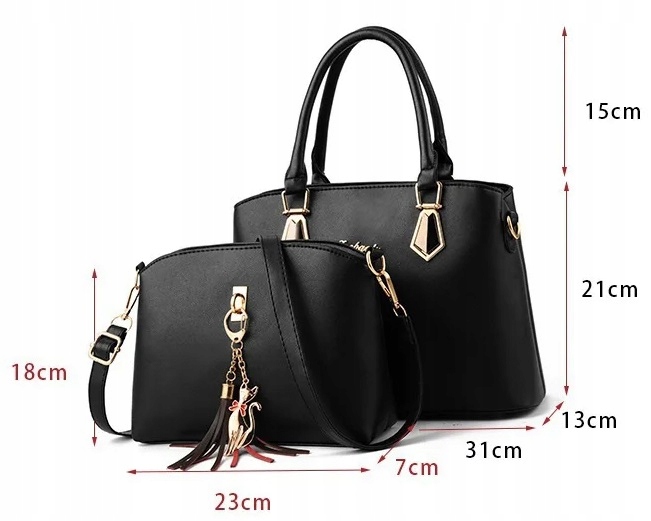- Комплект состоит из одной большой сумки + сумки меньшего размера + 1 брелок + 1 длинный ремень