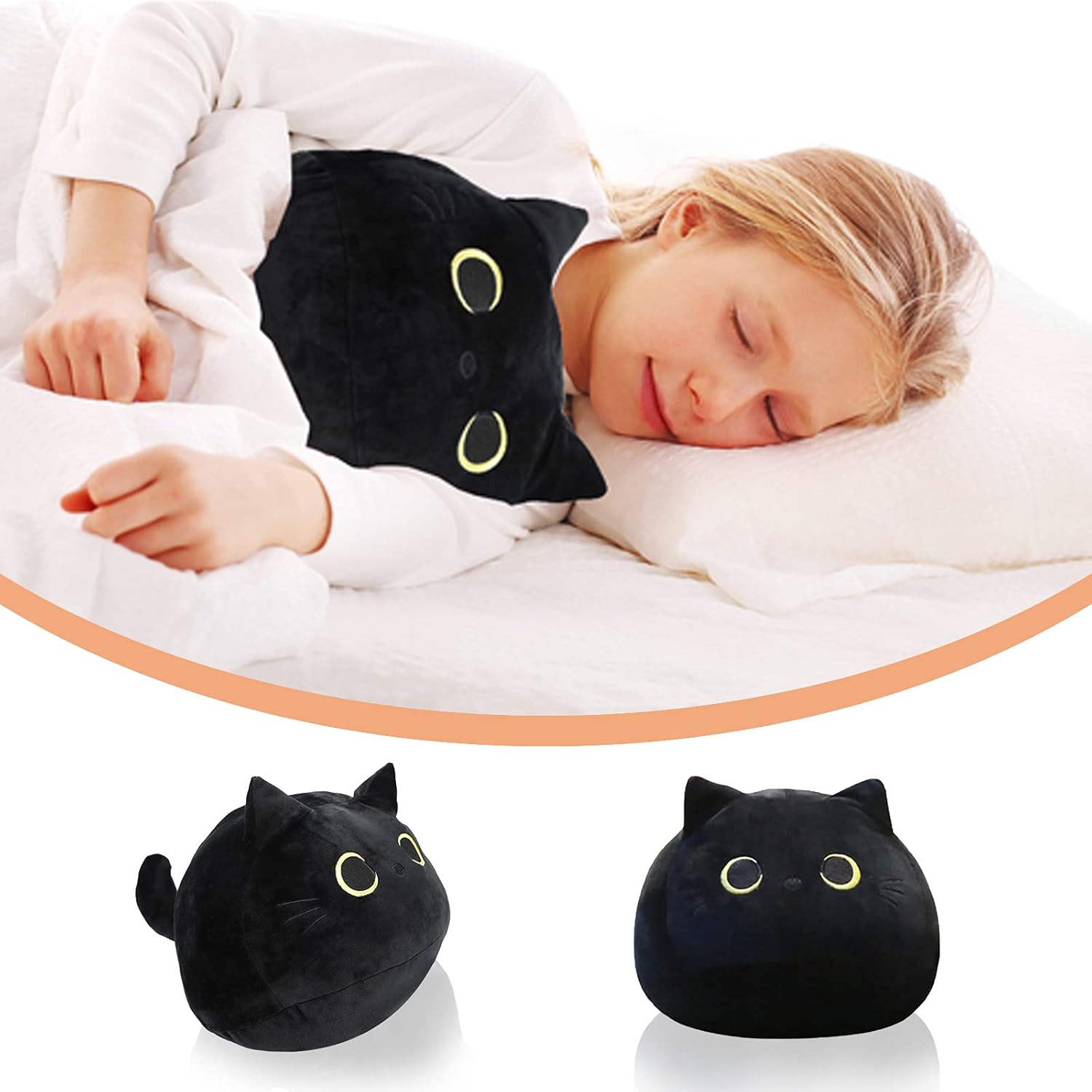 👍👍👍 Многократное использование: Нажатие на эту мягкую плюшевую игрушку можно использовать для снятия стресса. Можно использовать как декоративную подушку/подушку для сна/подушку для сна в офисе. Поскольку черный цвет очень устойчив к пятнам, вы также можете разместить его на своей кровати, диване, машине, балконе, коляске или где угодно, принося тепло и любовь в ваш дом.