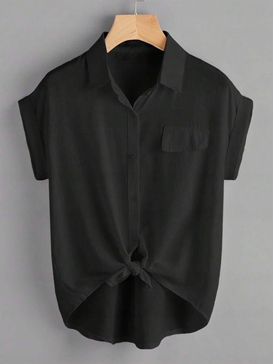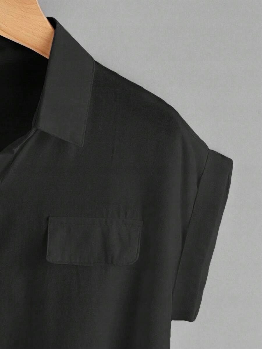 Черная классическая гладкая рубашка с короткими рукавами с кнопками Emery Rose 52