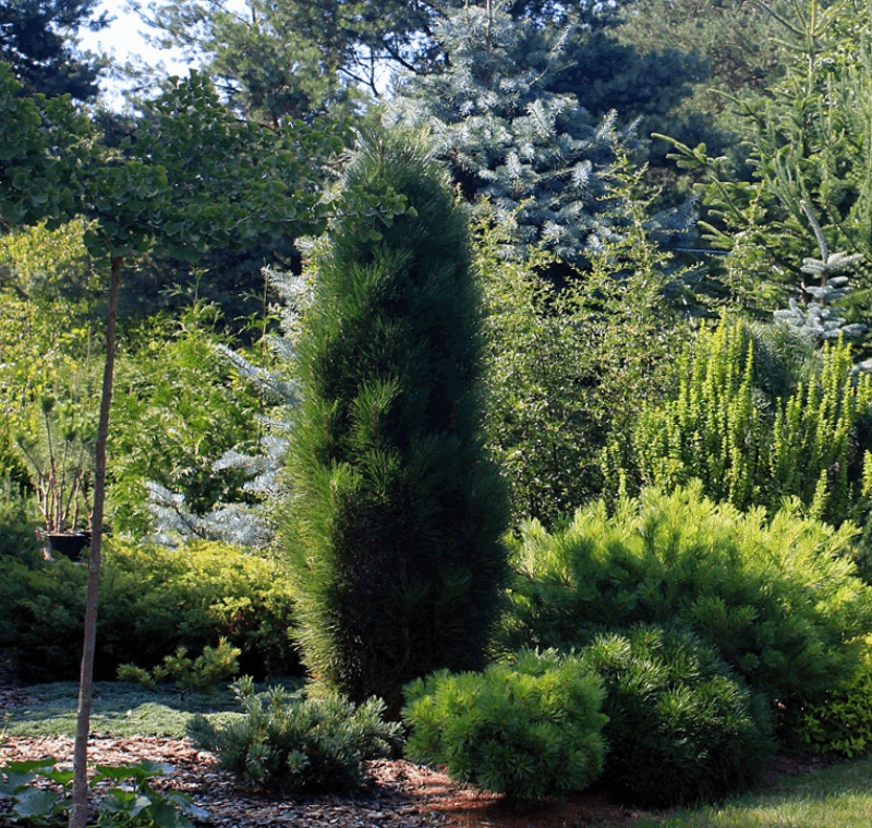 Сосна черная 'Green Rocket' – неприхотливый сорт, который притягивает взгляд и вызывает интерес благодаря красивой колонновидной форме и насыщенному темному цвету хвои. Имеет компактную, столбчатую форму, которая создается благодаря жестким, густо расположенным, растущим почти вертикально, ветвям, покрытым колючей хвоей. Растение достигает до 6 м в высоту, при этом рост его умеренно быстрый, так как через 10 лет достигает 2 – 2,5 м в высоту.