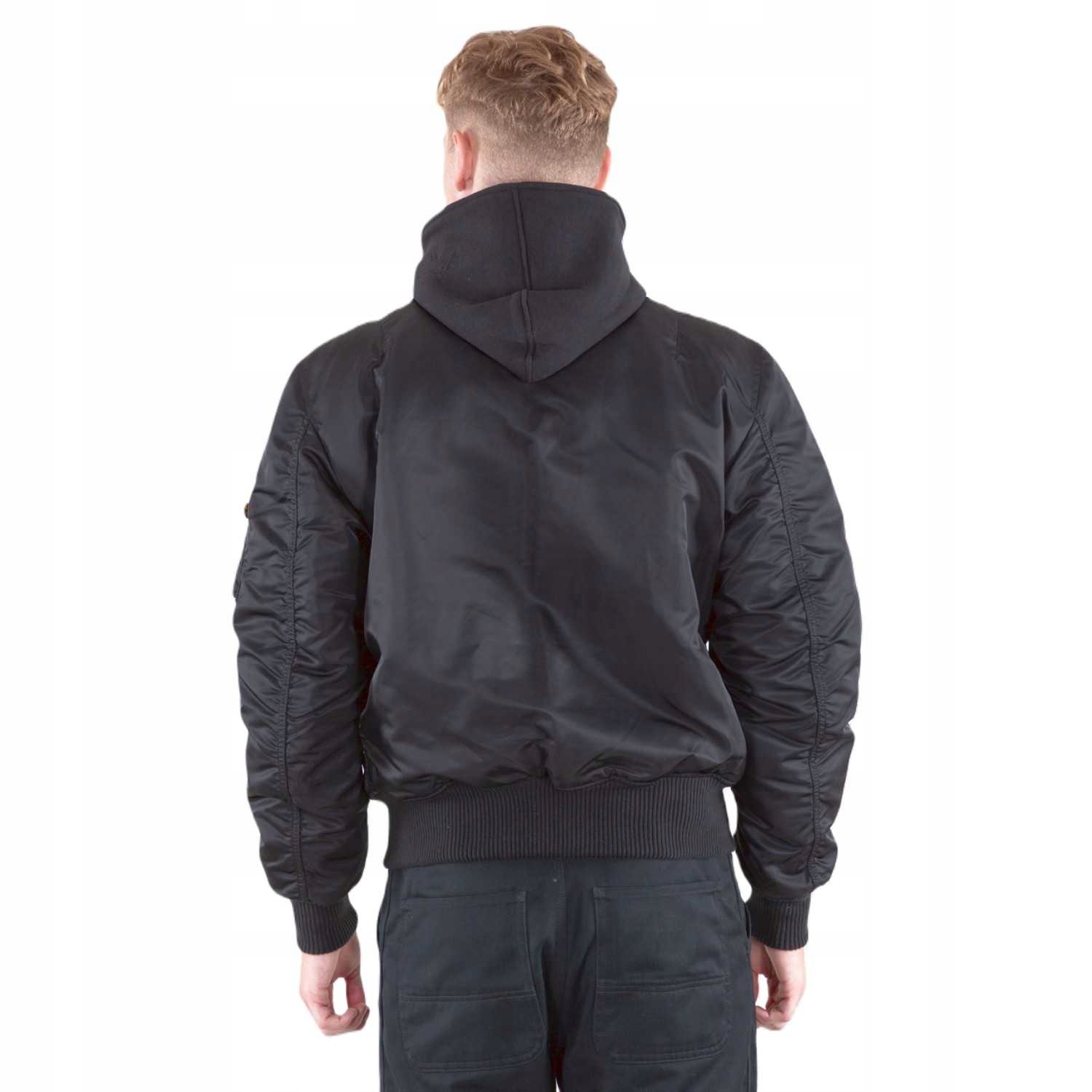 Куртка Alpha Industries MA-1 D-Tec — классическая модель с черным капюшоном.