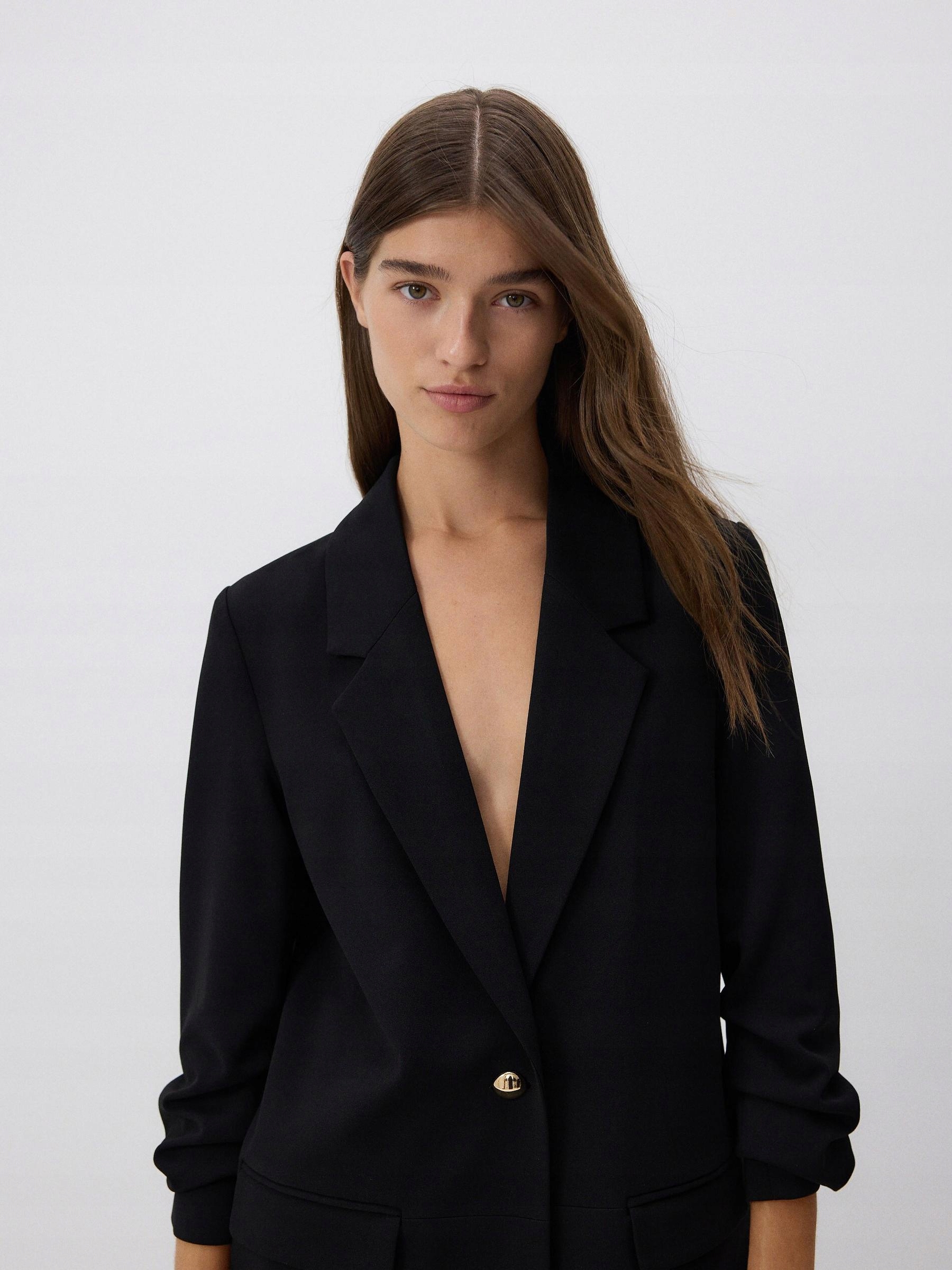 Черная куртка с извращенными рукавами Классическая простая гладкая xs