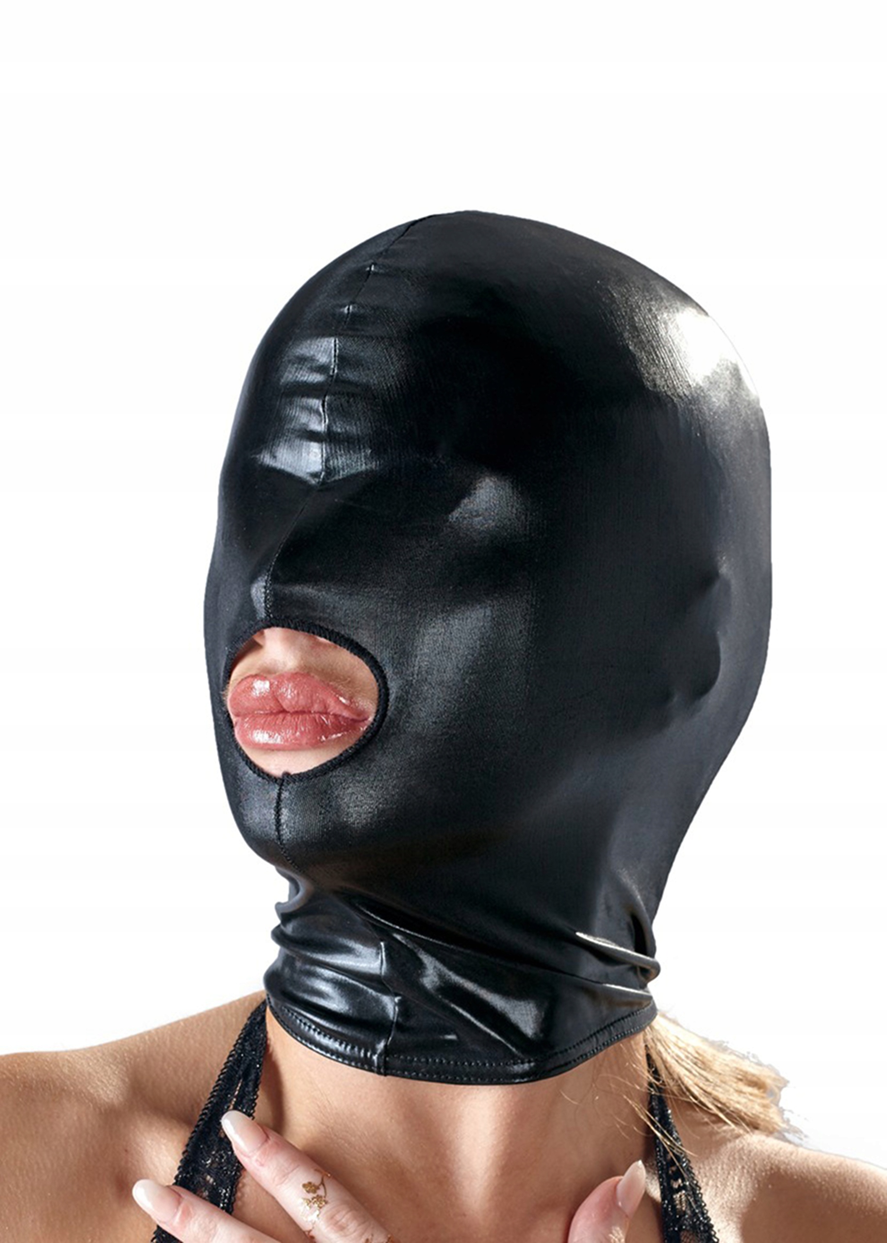 Имеет отверстие для рта, обрезанное вокруг отверстия, благодаря чему маска прослужит вам много опьяняющих ночей.