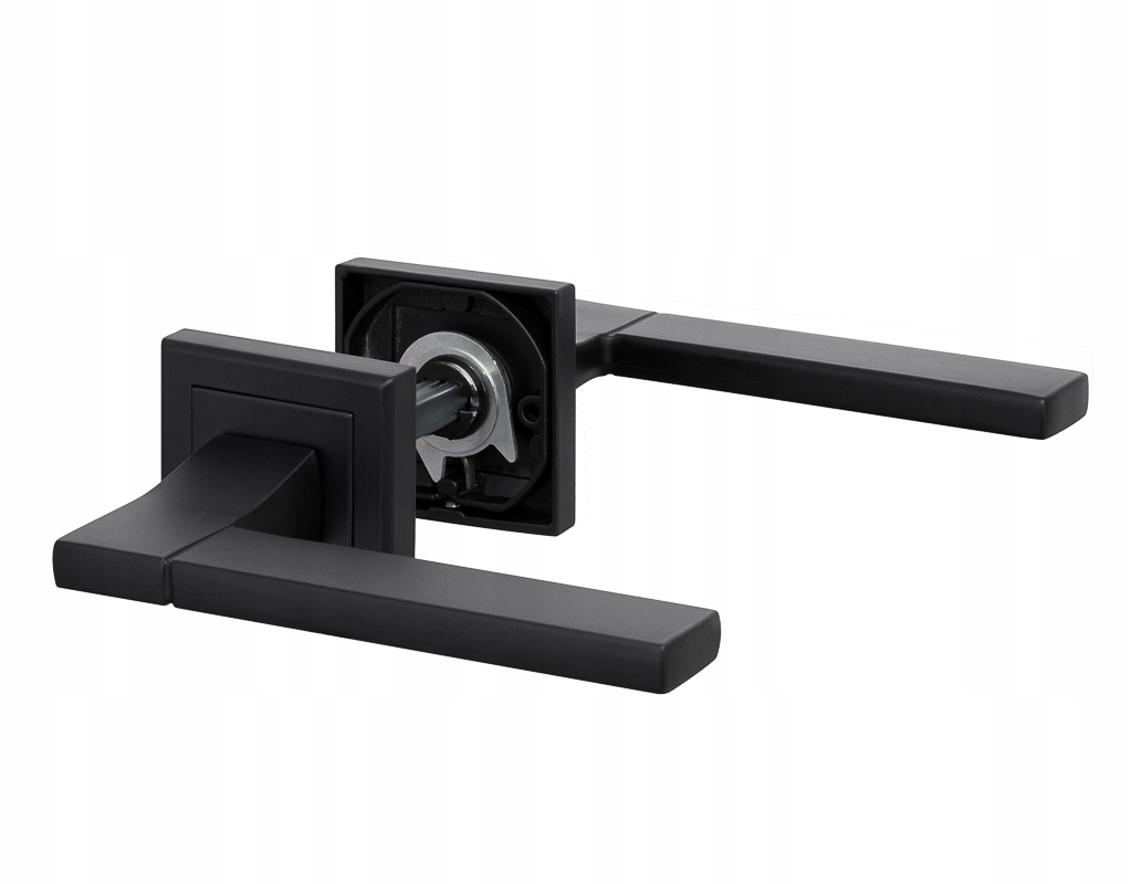 ЧЕРНАЯ МАТОВАЯ ДВЕРНАЯ РУЧКА + КВАДРАТНЫЕ РОЗЕТКИ