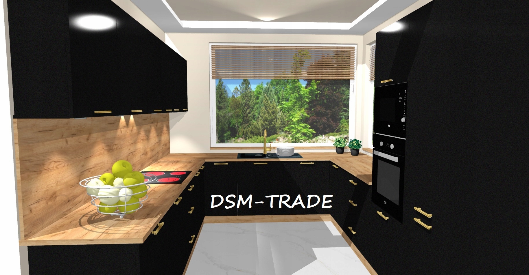 КУХНЯ С ЧЕРНЫМИ ГЛАДКИМИ ФАСАДАМИ АКРИЛОВЫХ МАТОВ В СОЧЕТАНИИ СО СТОЛЕШНИЦАМИ ДУБА ЗОЛОТОГО КРАФТА ДЛЯ ЛЮДЕЙ, ЦЕНЯЩИХ СОВРЕМЕННЫЙ ДИЗАЙН В ПРОСТОЙ ФОРМЕ – СТИЛЬНАЯ ЭЛЕГАНТНОСТЬ