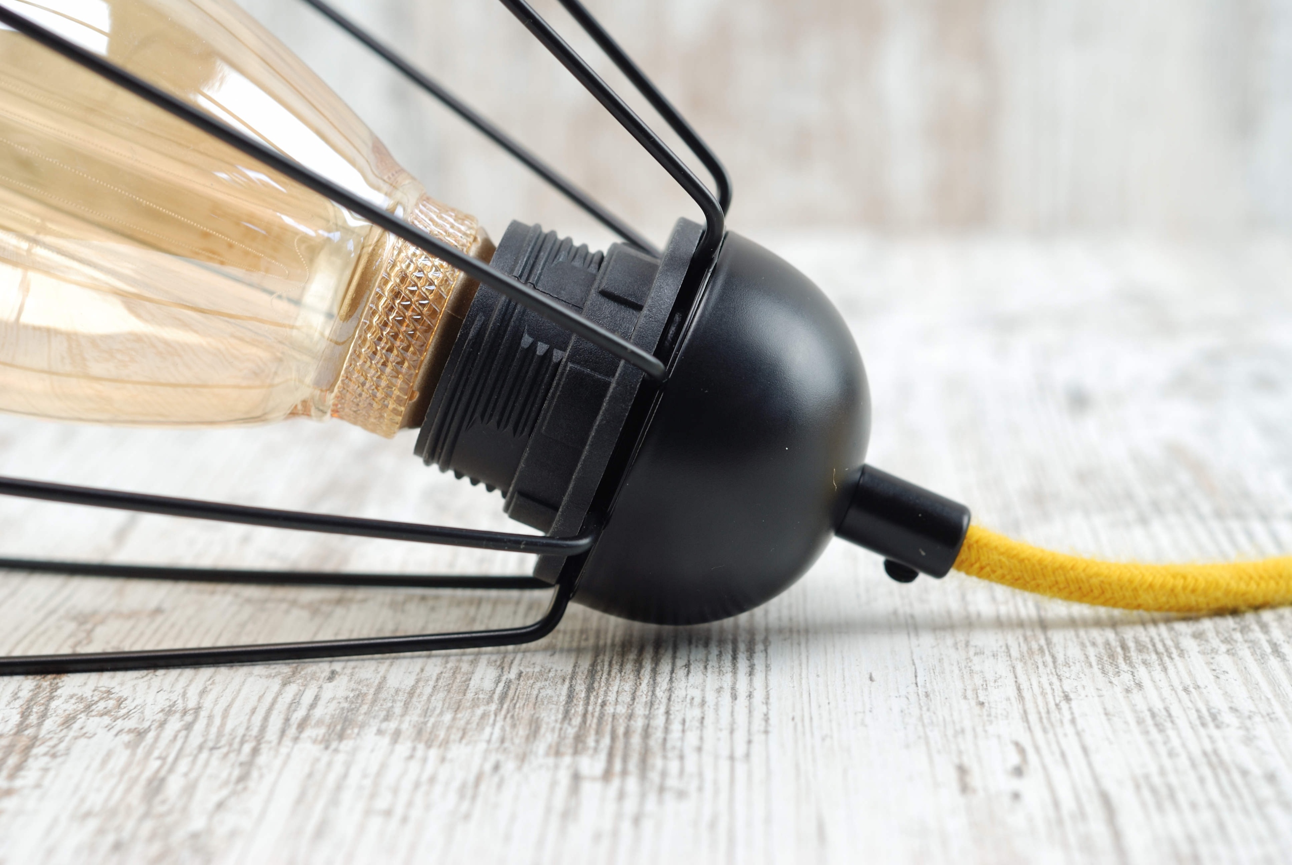 Патрон для лампы из польского термопластика с металлическим корпусом, тросовым замком и воротником для прикручивания абажура.