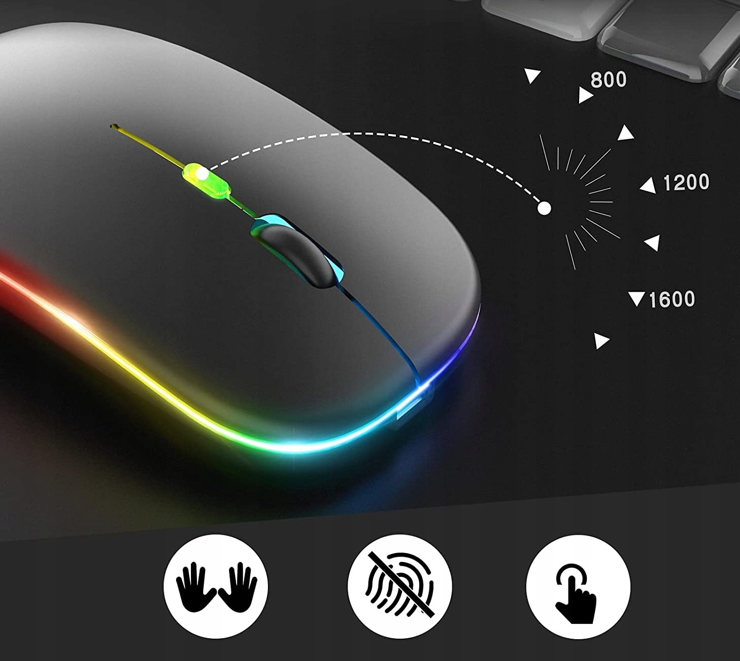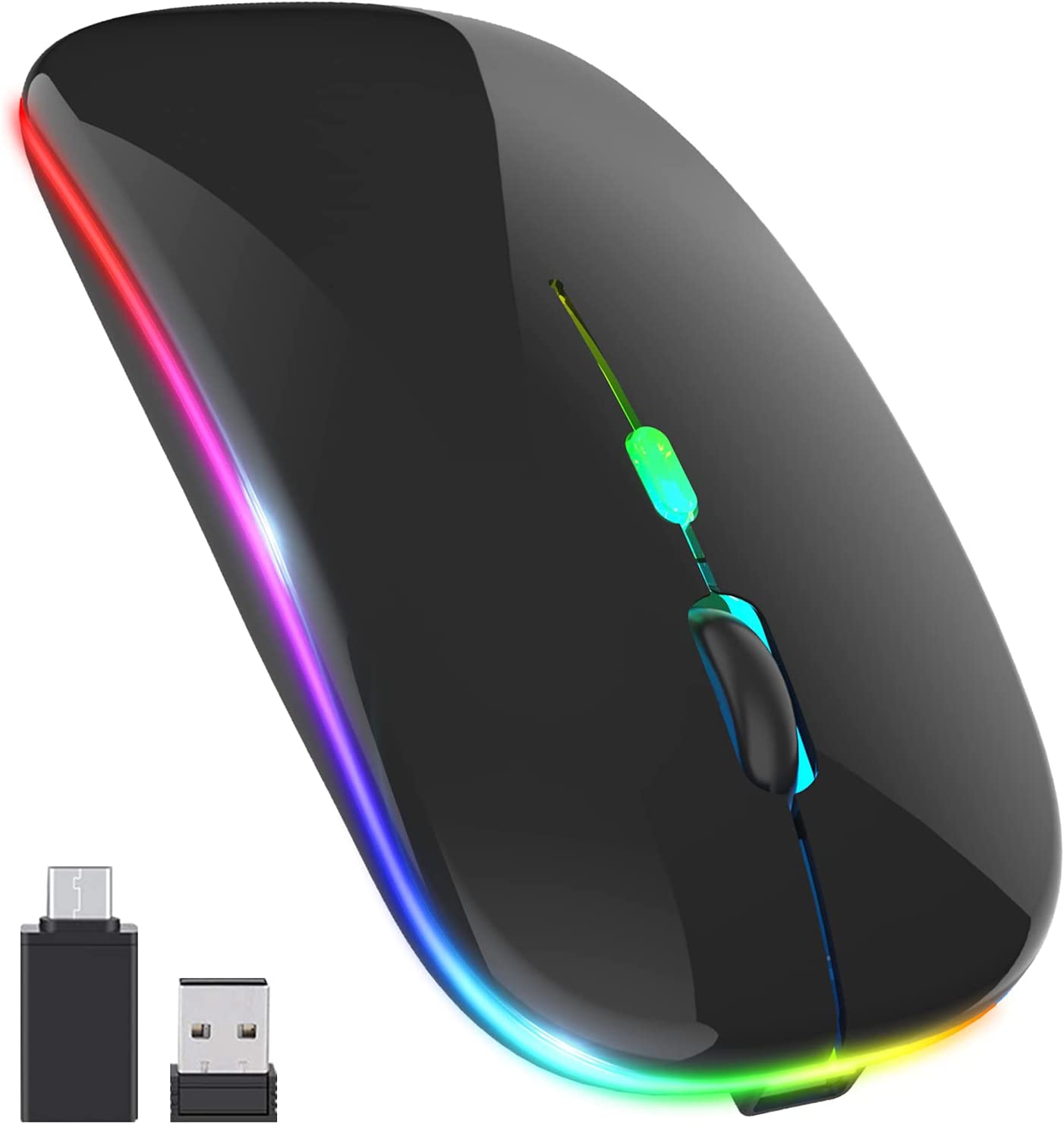 Улучшенный светодиодный дизайн 7 различные цвета изменяются во время использования, обеспечивает успокаивающее освещение и создает прохладную и сложную атмосферу для работы и развлечения. Беспроводная мышь поставляется с зарядным USB -кабелем, который также можно использовать при зарядке. После 8 минут бездействия мышь находится в спящем режиме. Мышь с тихим кликом с предотвращающей отделкой отпечатков пальцев обеспечивает ваши руки максимальной поддержкой и комфортом, она не прилипает, даже когда вы потеете. Тихая кнопка уменьшает шум на 90%, не опасаясь нарушения другой тишины. Нет необходимости устанавливать драйверы. Просто подключите USB-приемник к ноутбуку, чтобы мышь работала. Ну -совместно с Windows подходит для Mac с USB -портом или портом типа C, настольным компьютером, ноутбуком, компьютером и другими устройствами