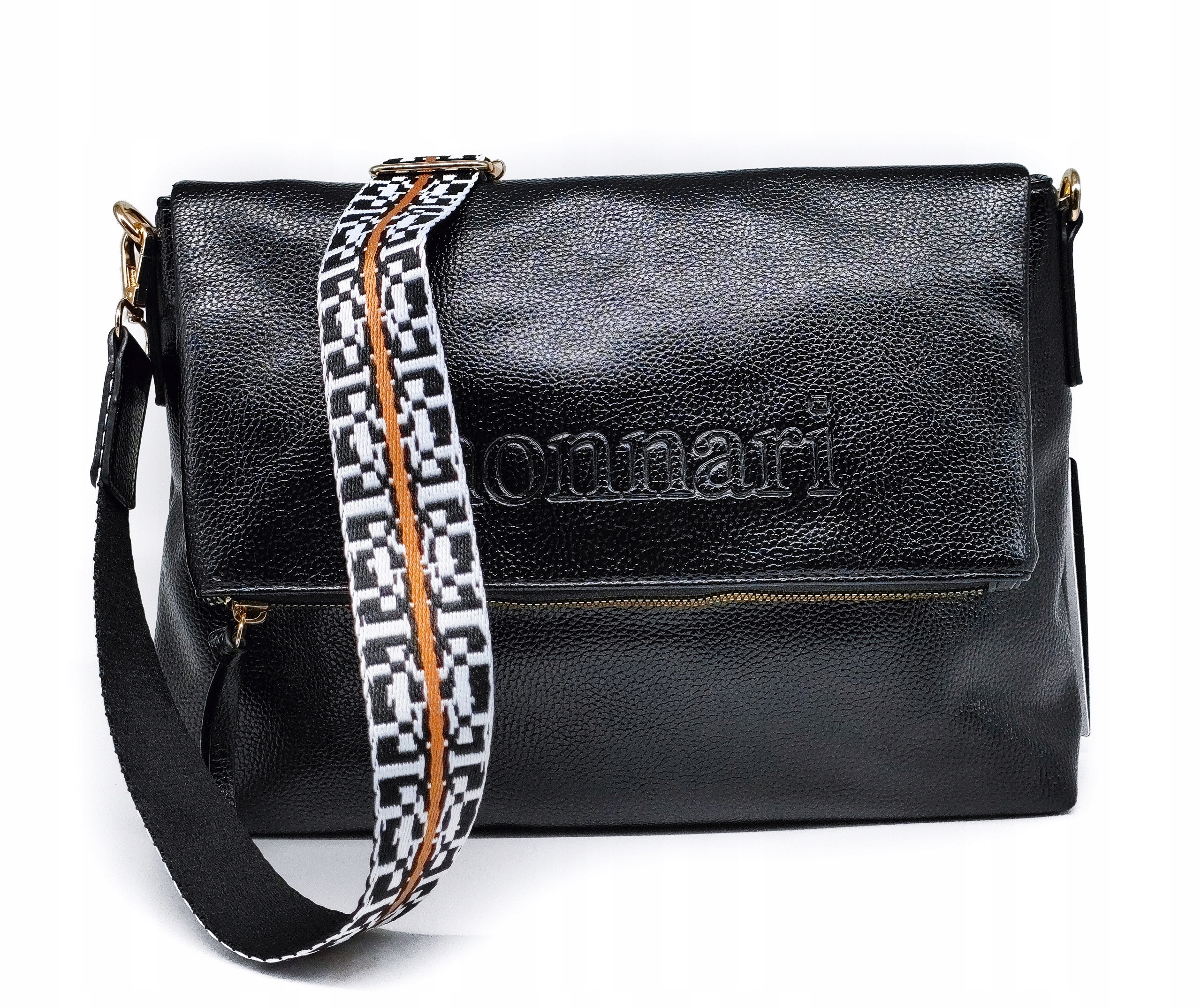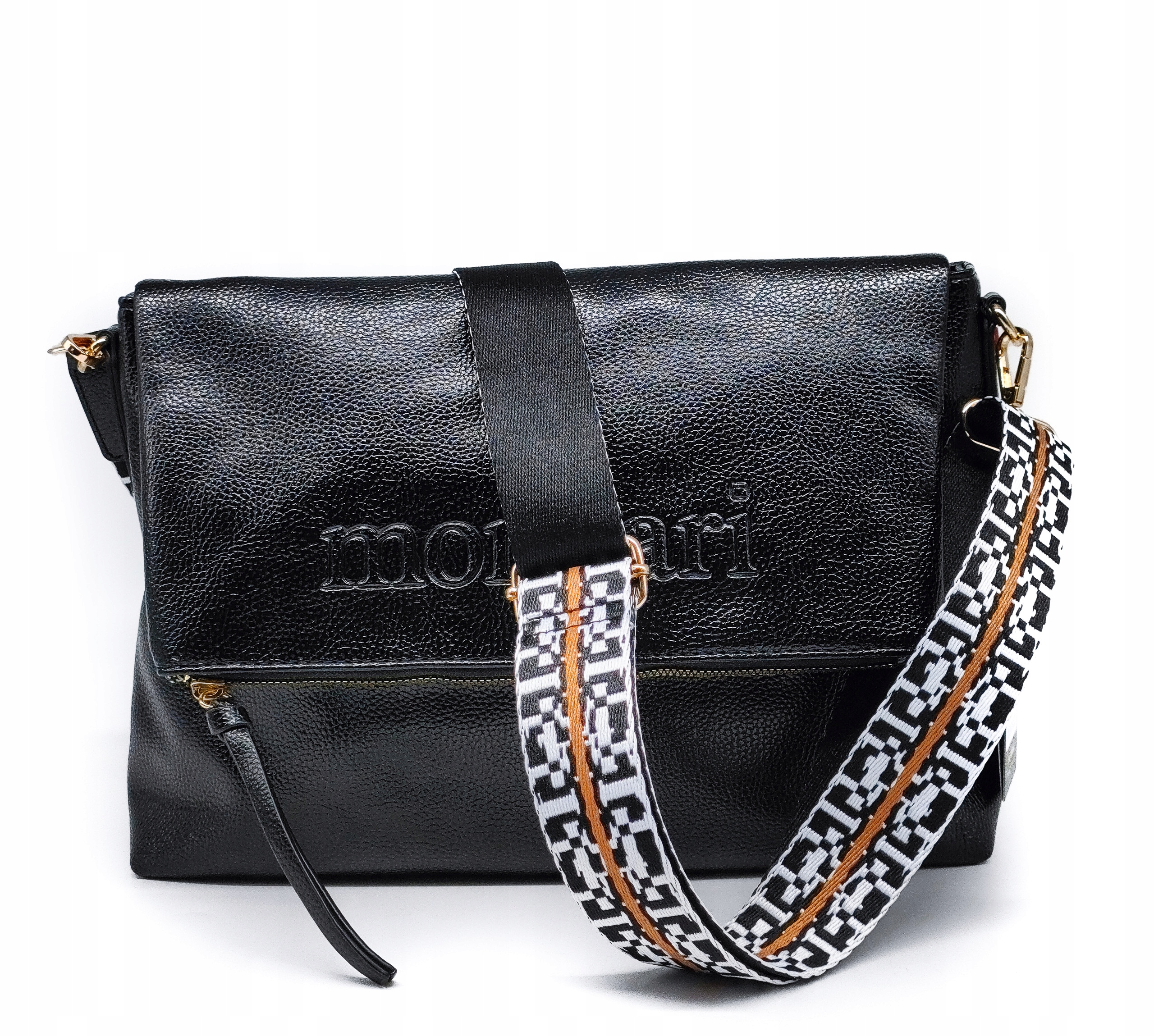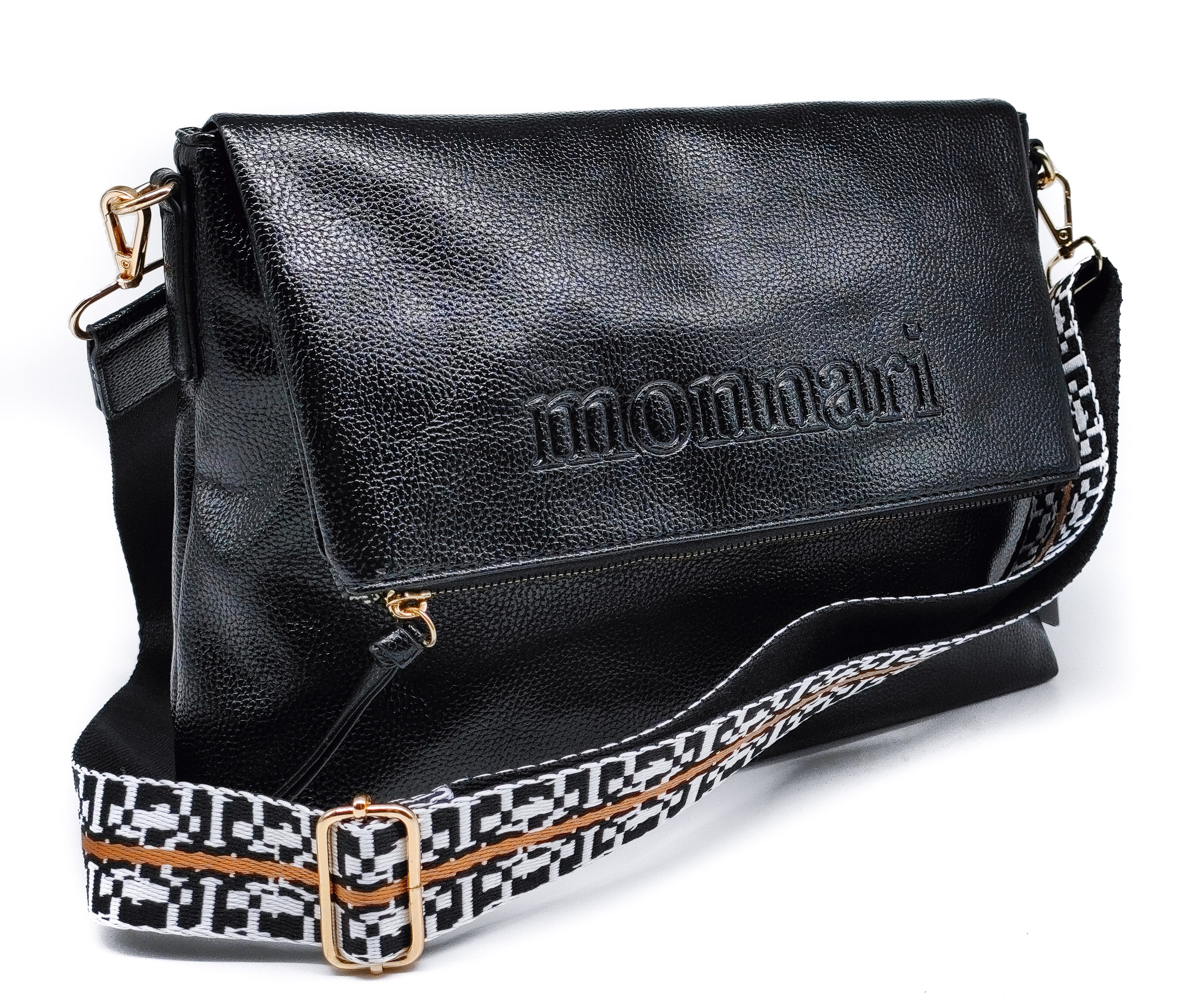Чорна містка сумка-почтальон на стрічковому ремінці Monnari 2024