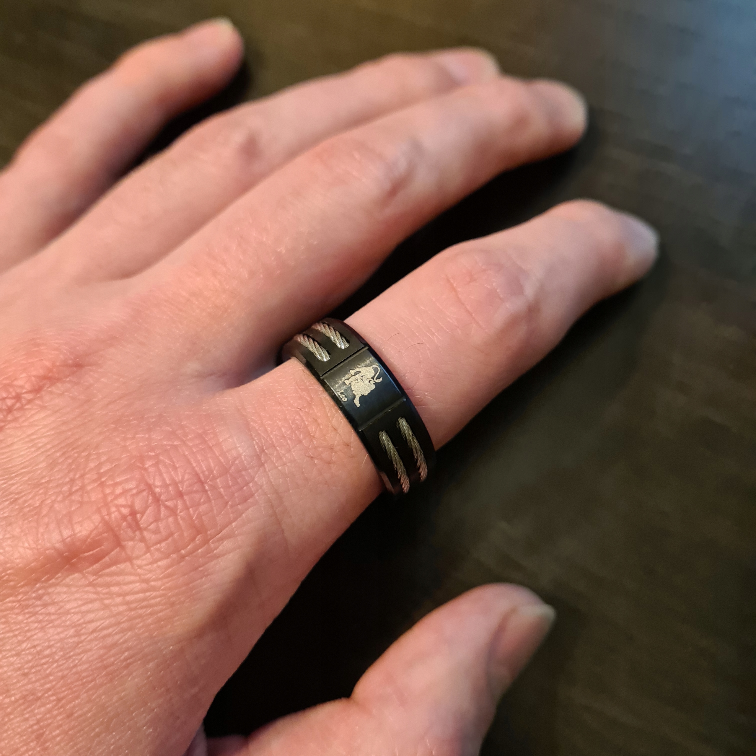 ЧОРНА ОБРУЧКА З ПЕЧАТКОЮ ЗНАК ЗОДІАКУ ЛЕВ R20