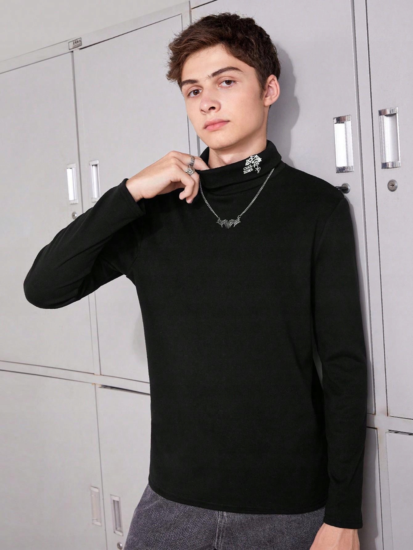 ЧОРНА ОДНОТРАННА БЛУЗКА ДЛЯ ГОЛЬФІВ З ДОВГИМИ РУКАВАМИ CLASSIC SHEIN 164