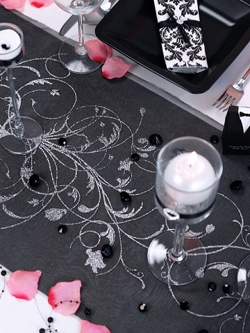Чорна органза з візерунком сріблястого тюлю, прикраса столу до Різдва
