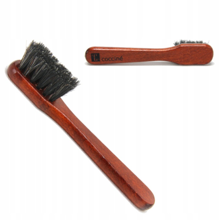Кисть изготовлена из конского волоса. Эргономичная деревянная ручка хорошо лежит в руке при нанесении полироли на обувь и кожаные изделия. Бренд Coccine сочетает в себе функциональность и доступную цену. Щетка для обуви — один из MUST HAVE товаров в каждом доме.