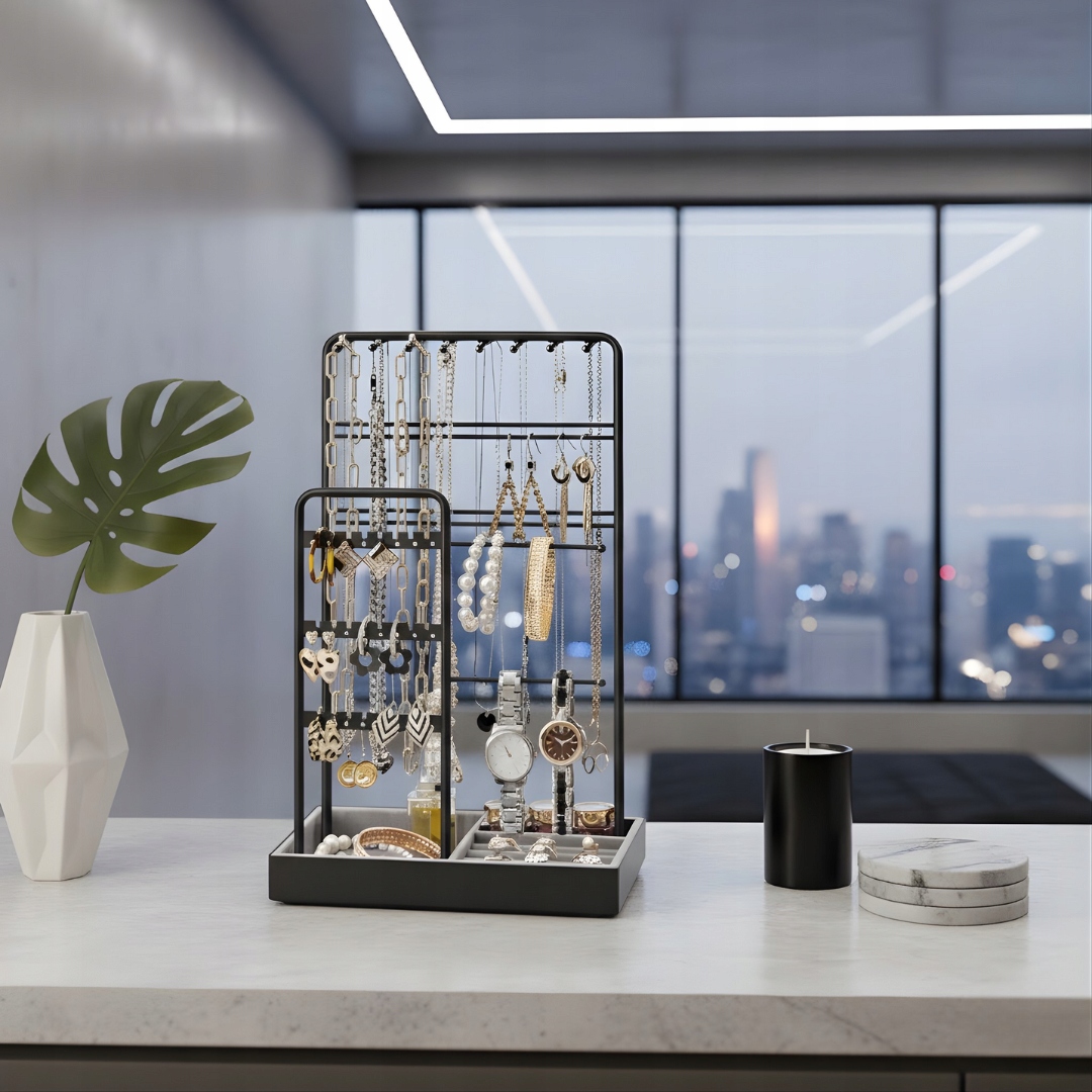 ✅ Прочная конструкция с бархатом: Устойчивый металлический каркас обеспечивает долговечность, а мягкая бархатная основа защищает украшения. от царапин.