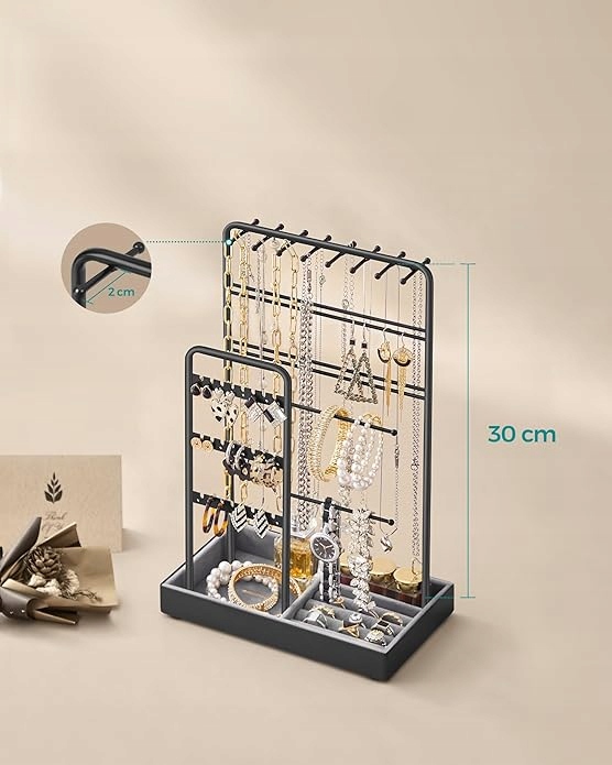 ✅ Хранение длинных ожерелий: Высота 30 см позволяет легко разместить более длинные ожерелья, которые останутся в безопасности и будут элегантно представлены.