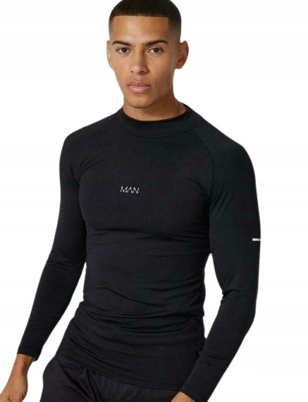 ЧОРНА ПРИТАЛЕНА ФУТБОЛКА СПОРТИВНИЙ ТРЕНАЖЕРНИЙ ЗАЛ ДОВГИЙ РУКАВ ЛОГОТИП BOOHOO XXL