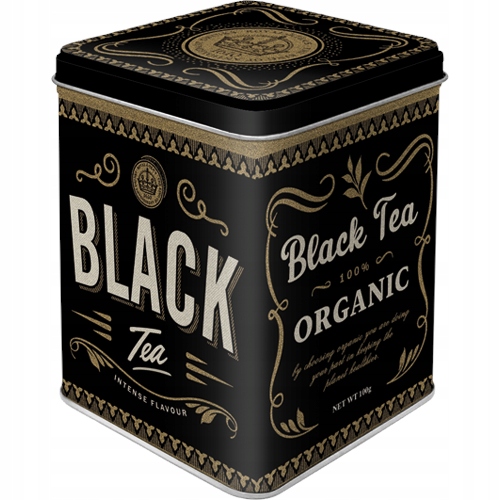Черная металлическая банка в стиле ретро с крышкой для чая