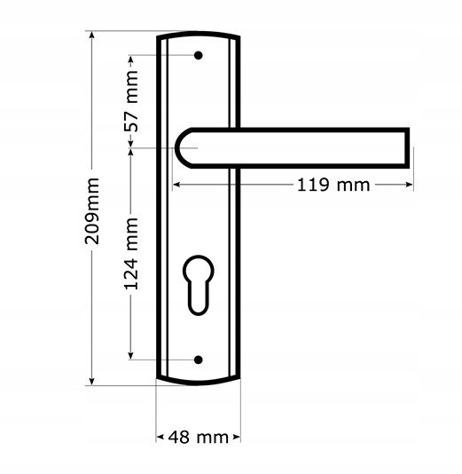 - Ручка имеет безопасную внешнюю пластину, благодаря которой винты не видны за пределами здания.