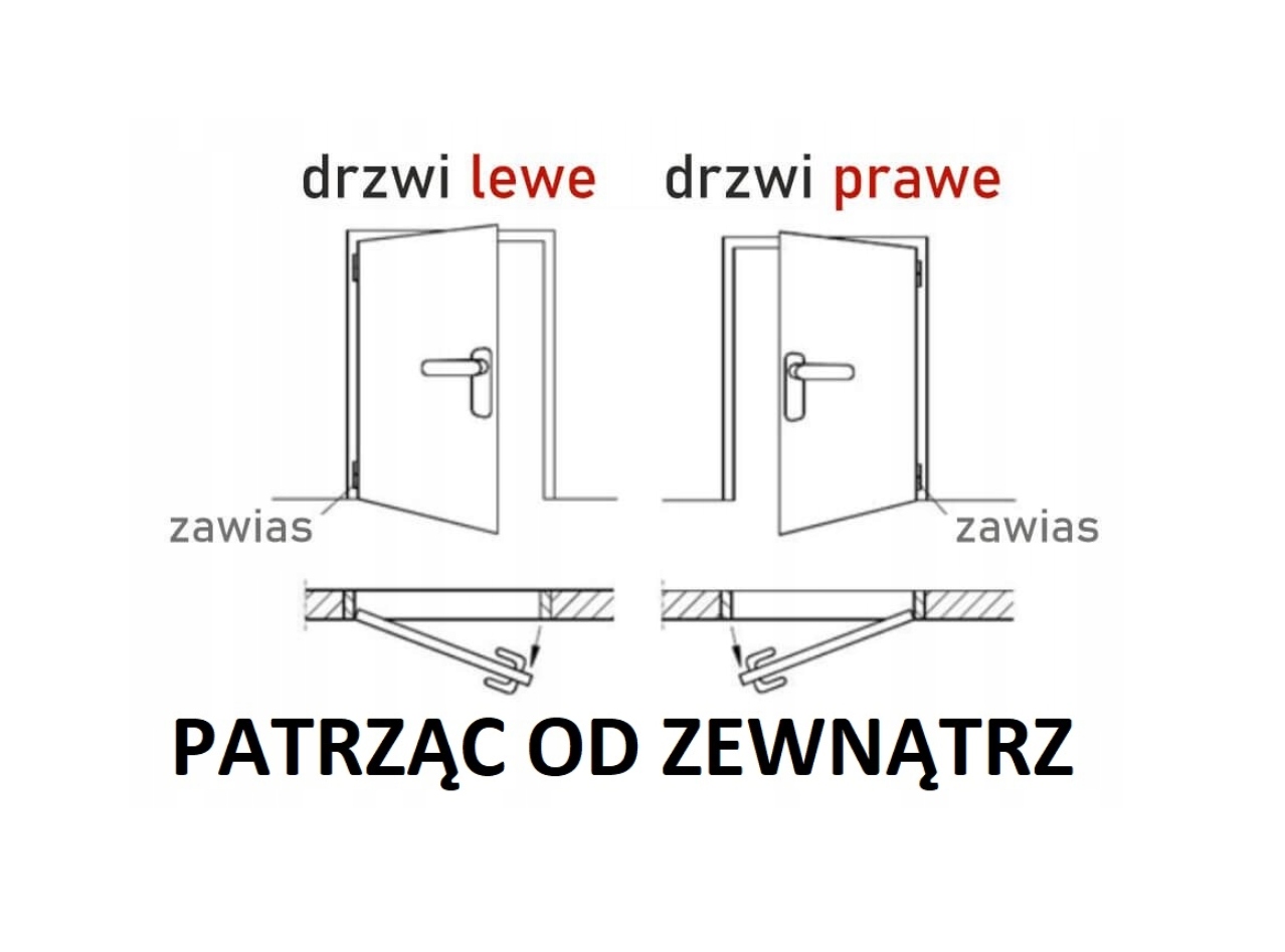 - Ручка слева - Если смотреть снаружи здания, петли должны находиться с левой стороны.