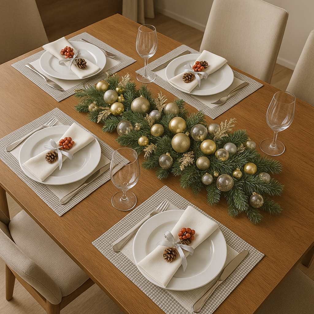 - Скатертью оттенков серебра, бутылочно-зеленого или красного,